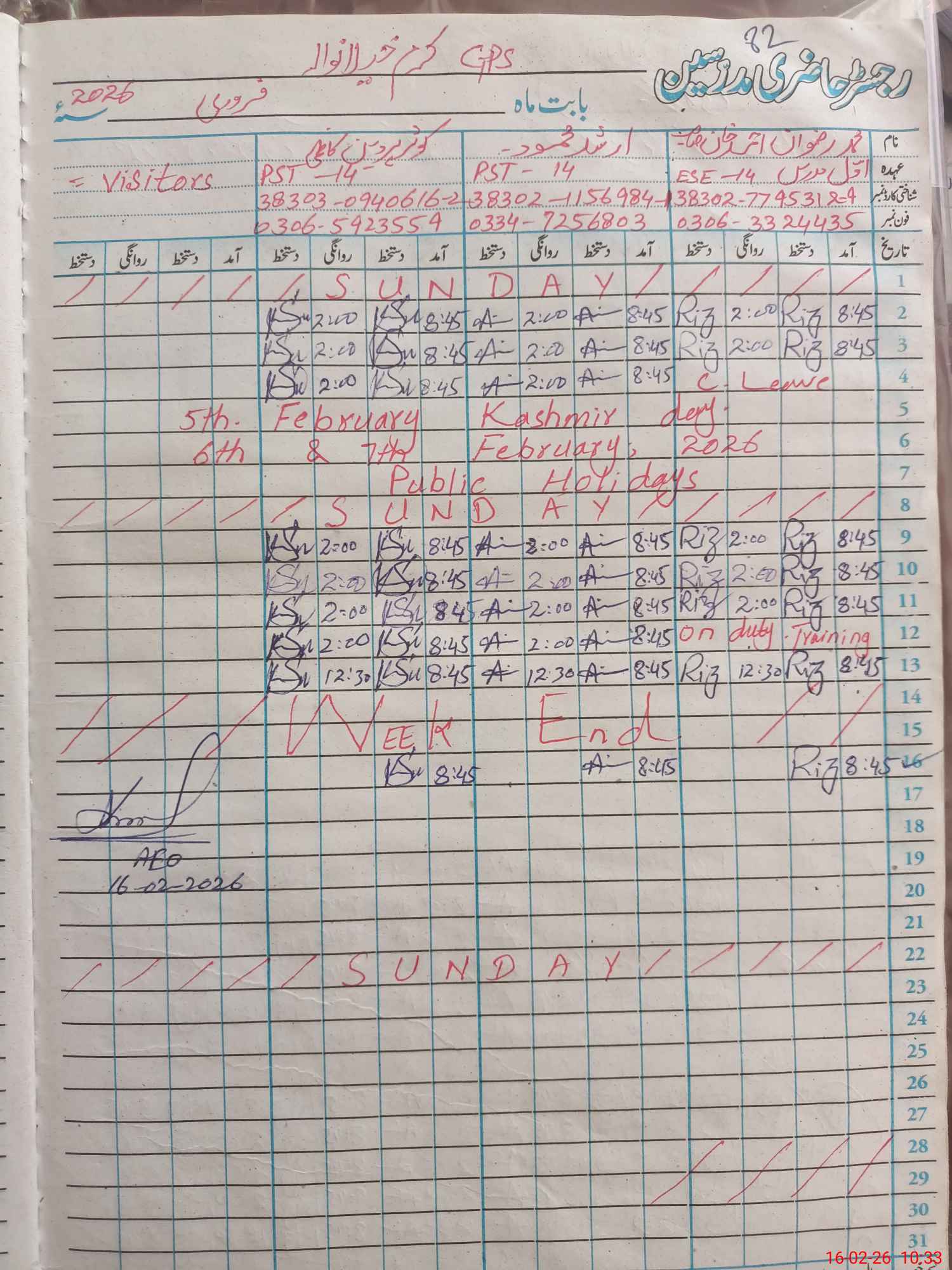 | Monitoring Date: 16-02-2026 | Start Time: 16-02-2026 10:09 AM | End Time: 16-02-2026 10:34 AM | Name of MEA: Az**** Ul**** Kh**** | |