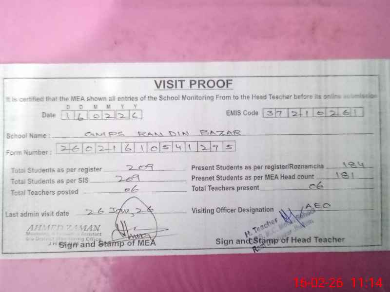 | EMIS Code: 37210261 | Name of School: GMPS MC RAM DIN BAZAR | |||
