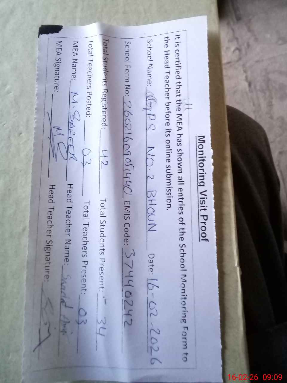 | EMIS Code: 37440242 | Name of School: GPS BHOUN NO.2 | |||
