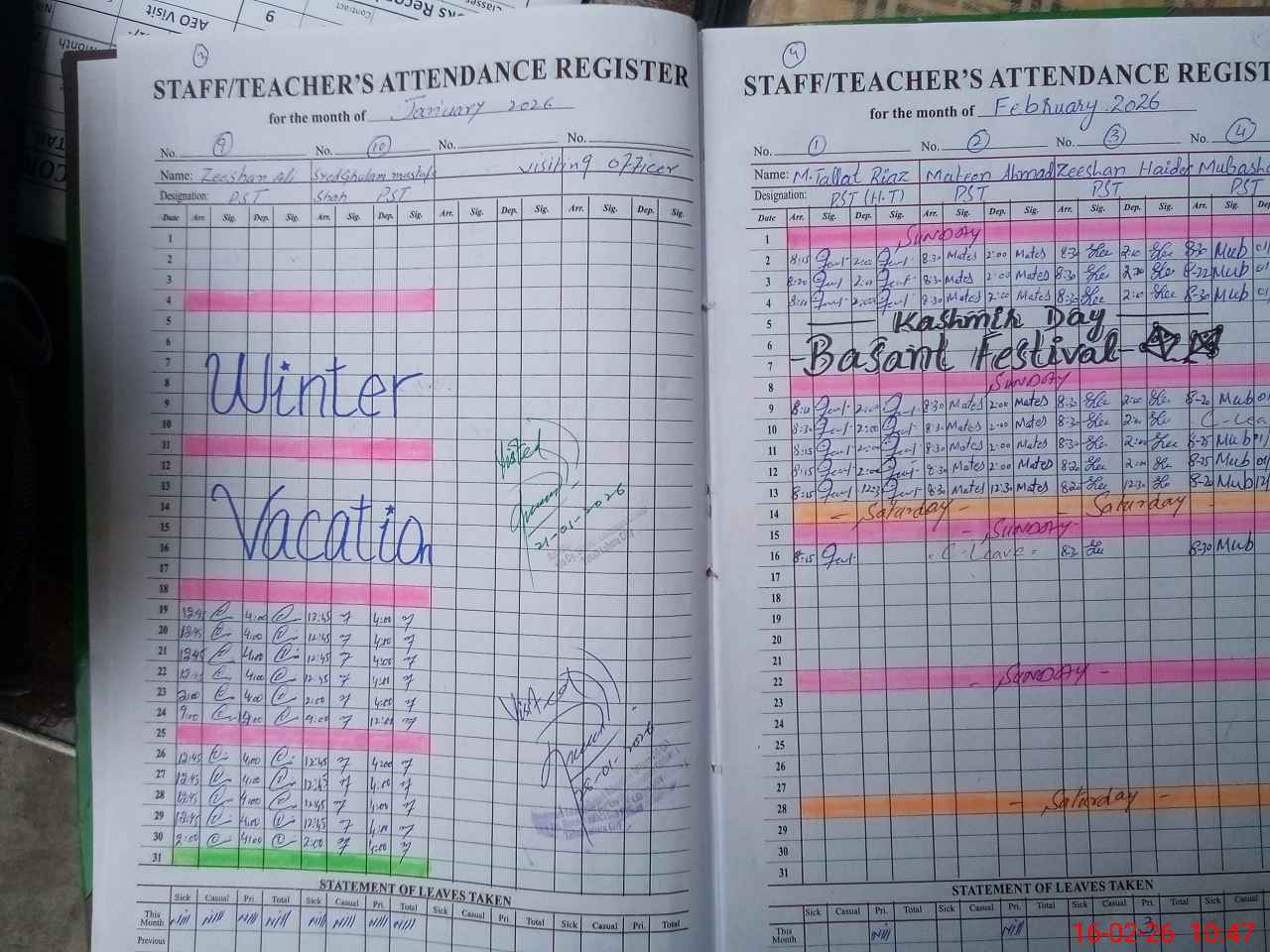 | Leave | Duty | Absent | Maternity | Medical | Ex- Pak |