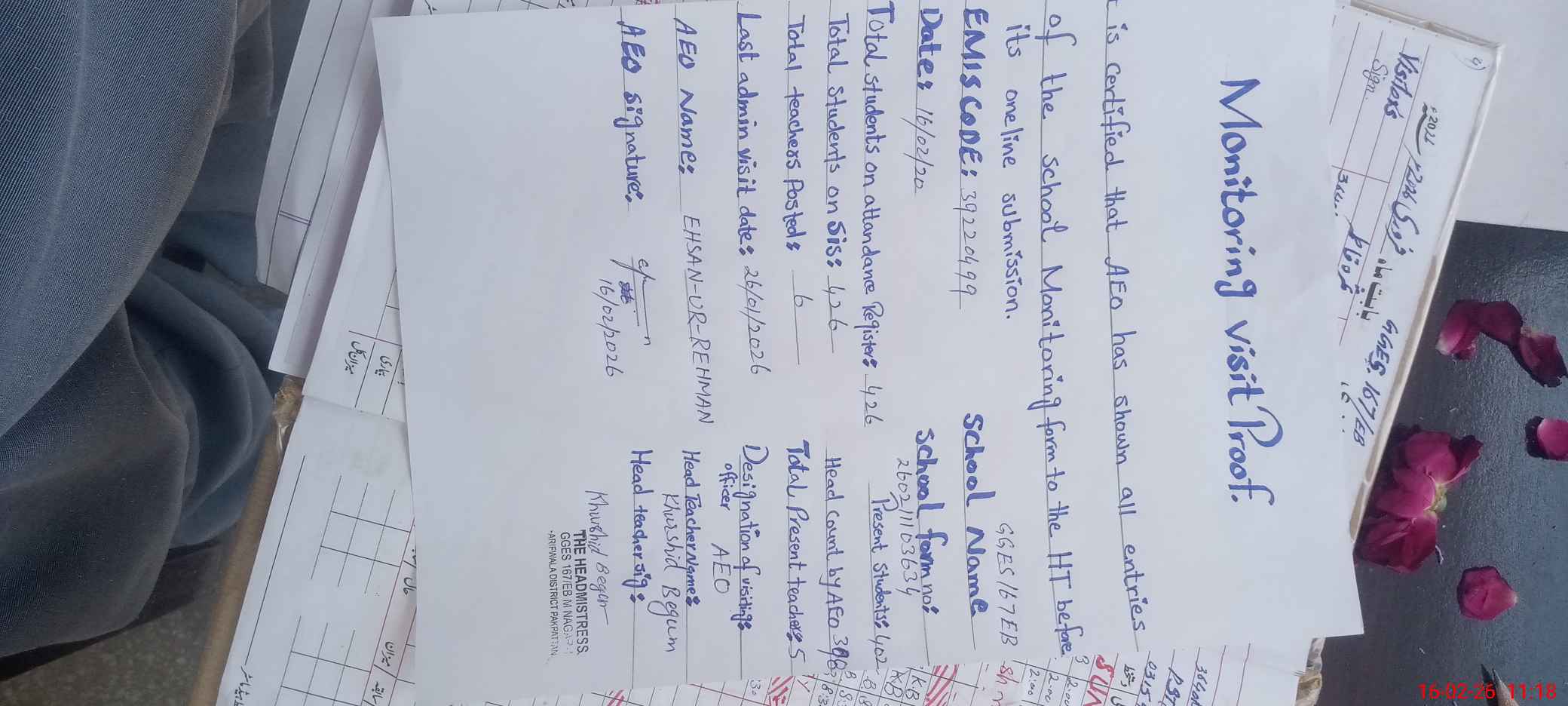 | Certified that this School was Inspected by the Undersigned MEA/DMO Today and the Information Stated Above is as Per Record. | |||||