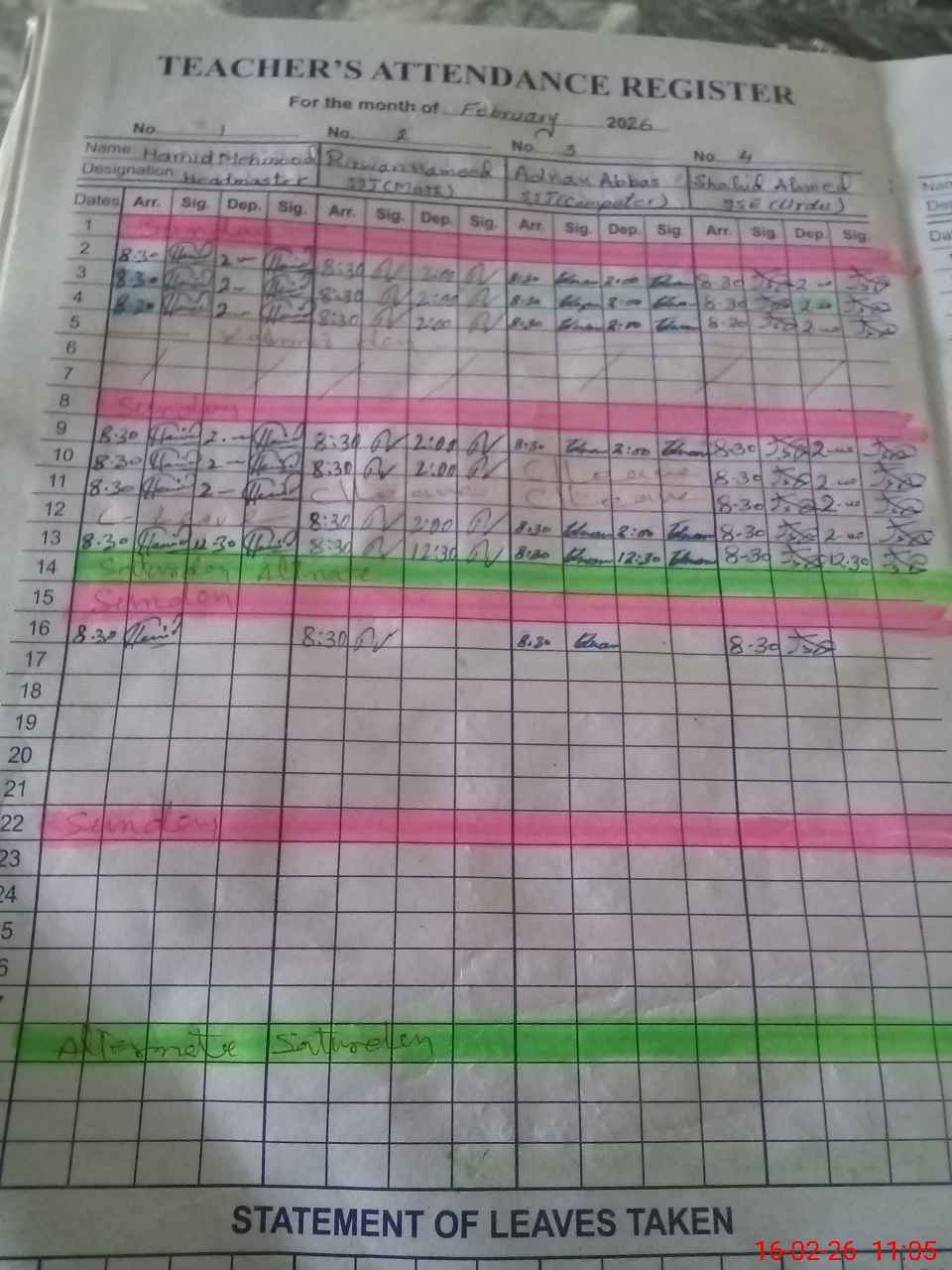 | 37**** | Sy**** Wa**** Ab**** | PST Arts | Regular | 0 | 0 | 0 | 0 | 0 | 0 | 0 | 0 | 0 | Casual |