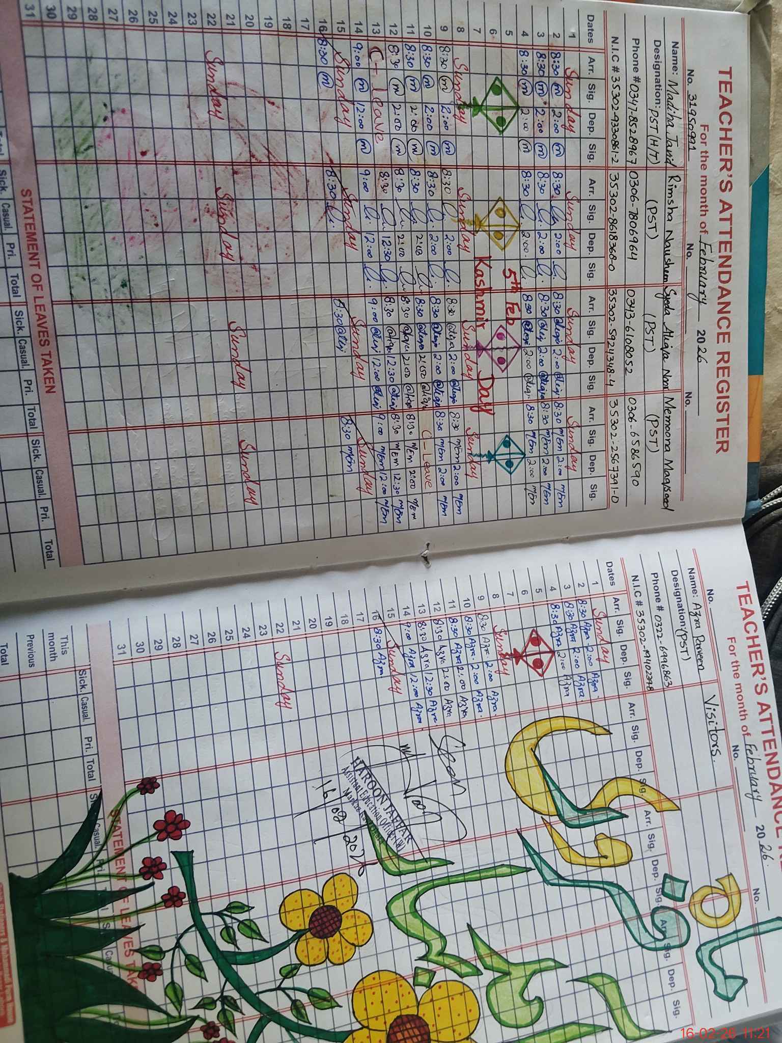 | CNIC | Full Name | Designation | R/C | Absence During Last Calender Month |