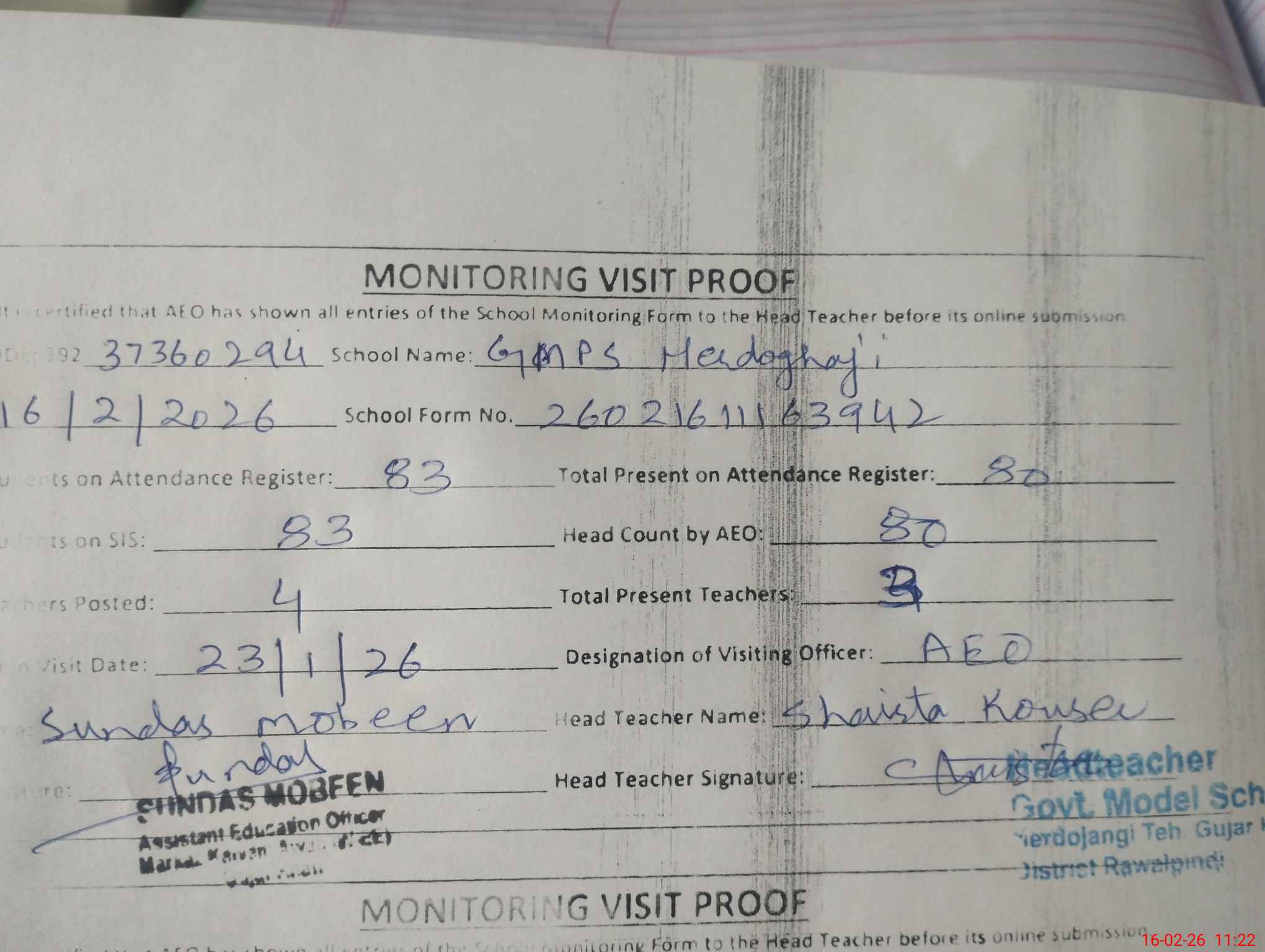 | EMIS Code: 37360294 | Name of School: GPS MODEL HERDO JHAGI | |||