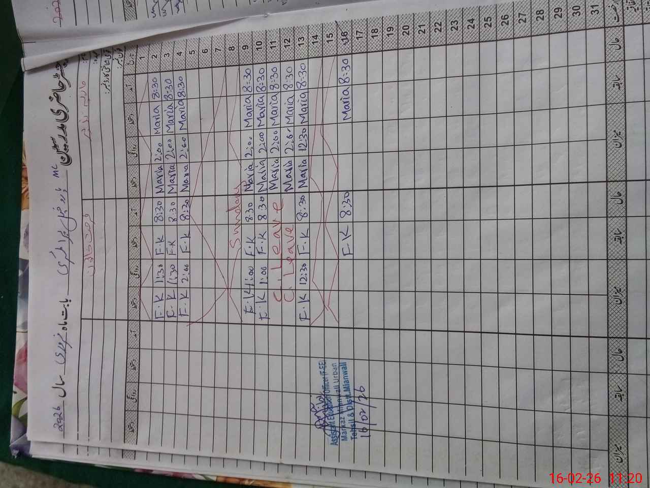 | CNIC | Full Name | Designation | R/C | Absence During Last Calender Month |