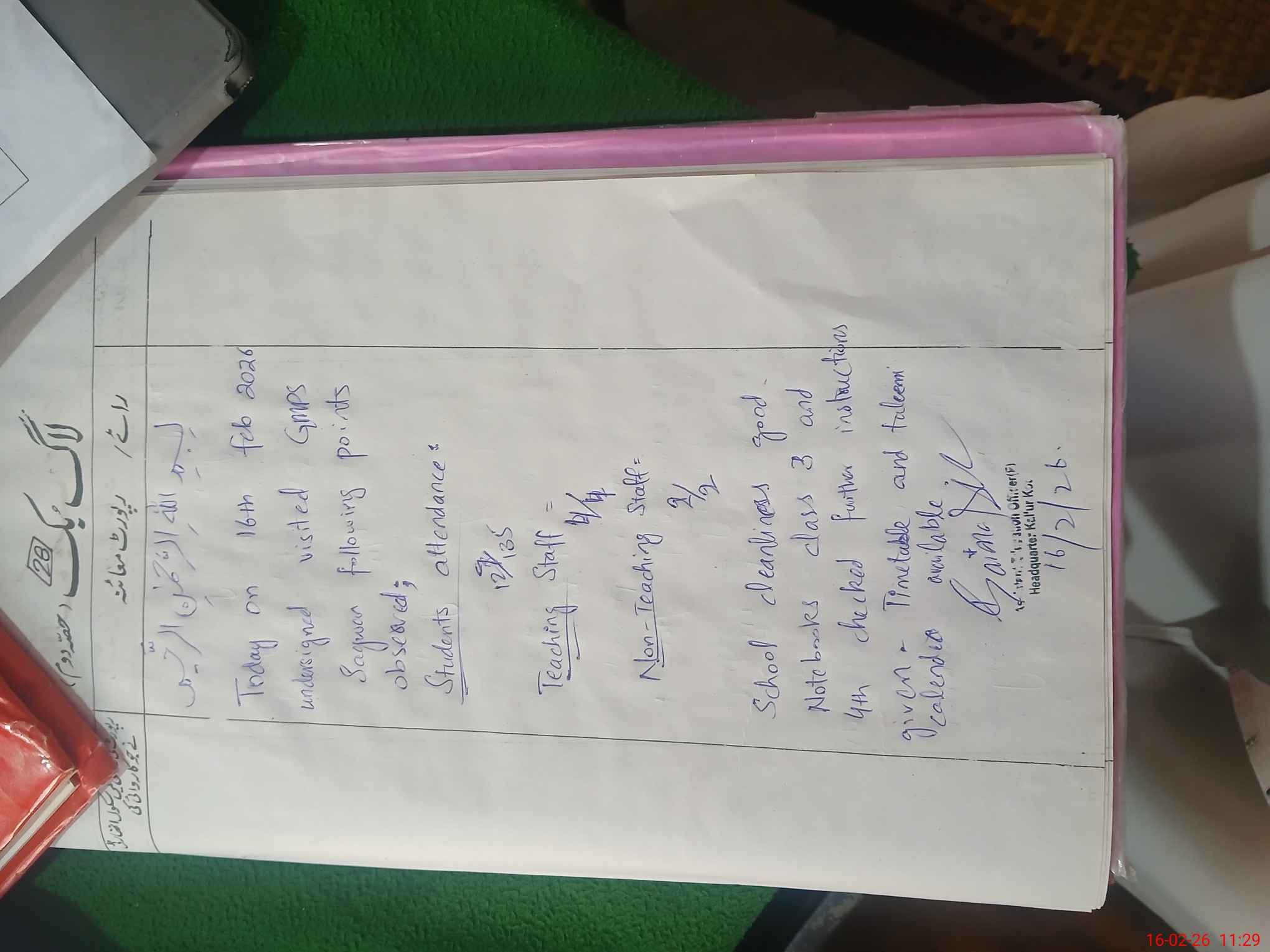| Certified that this School was Inspected by the Undersigned MEA/DMO Today and the Information Stated Above is as Per Record. | |||||