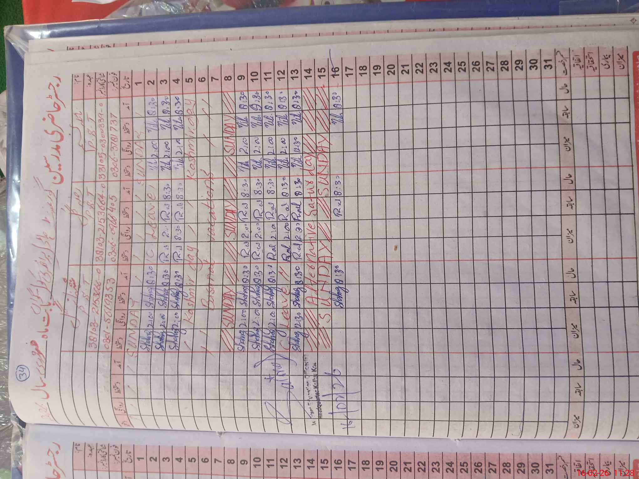 | CNIC | Full Name | Designation | R/C | Absence During Last Calender Month |