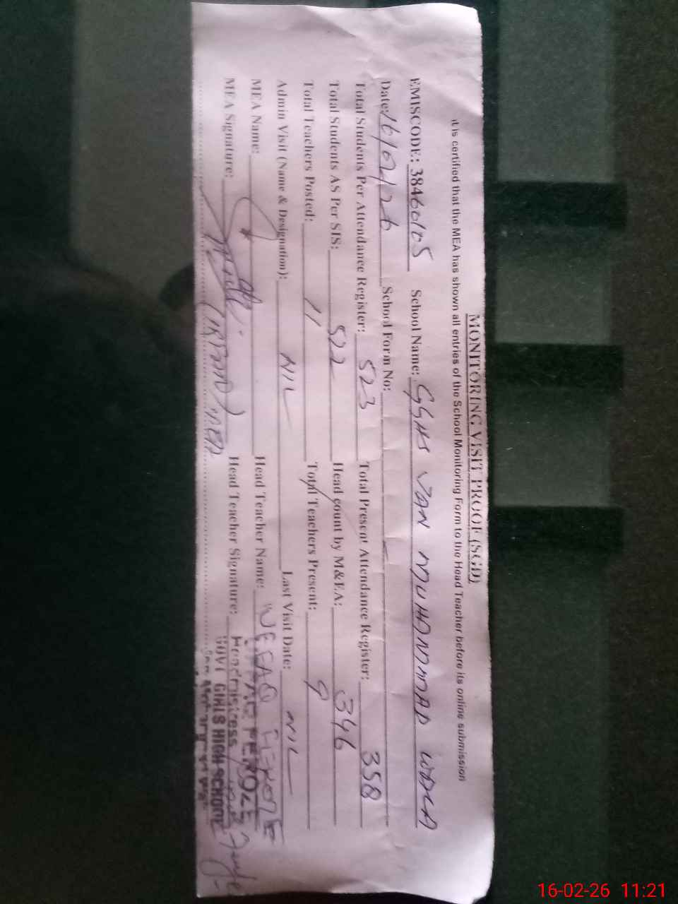 | EMIS Code: 38460105 | Name of School: GGHS JAN MUHAMMAD WALA | |||