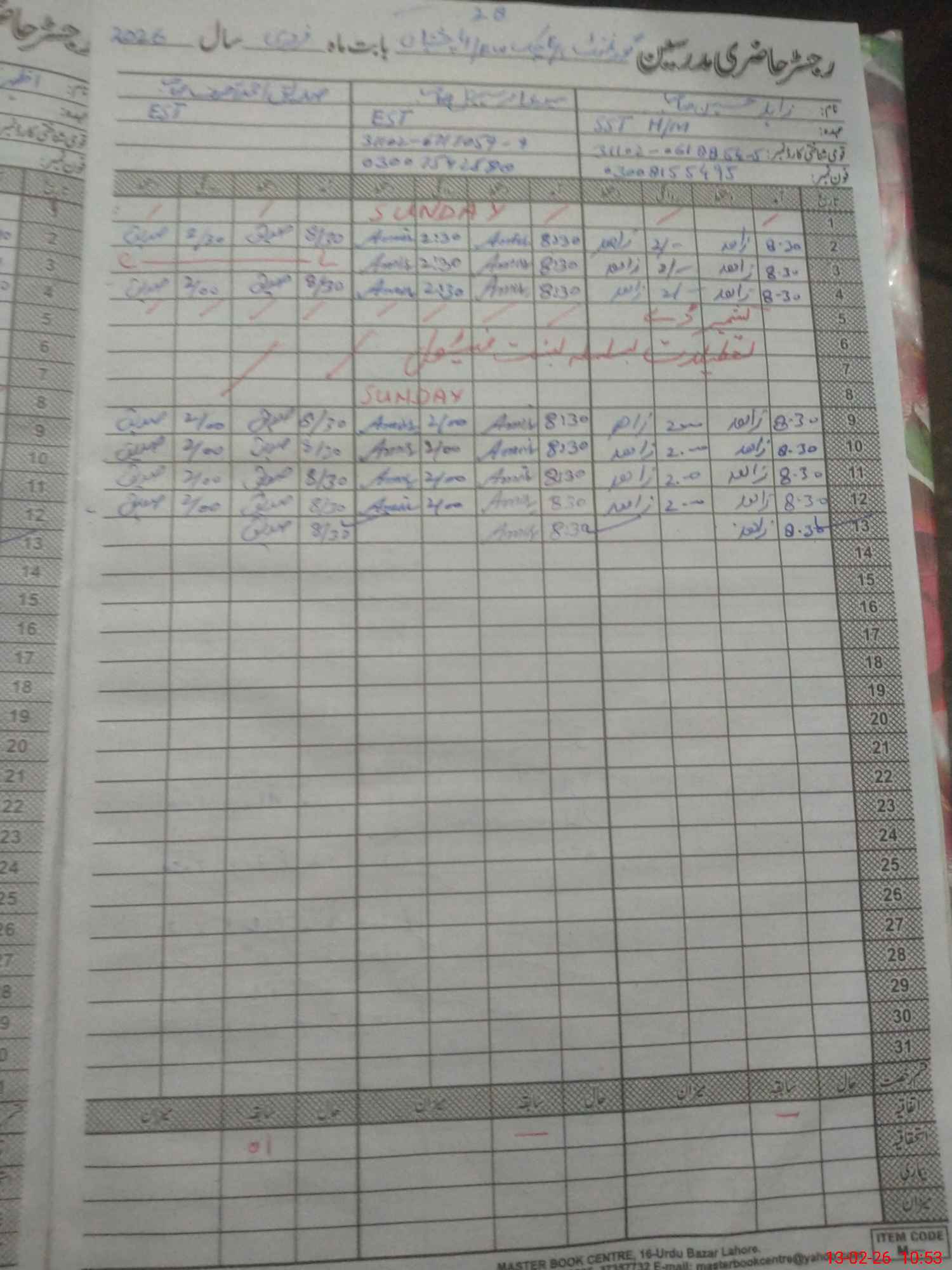 | CNIC | Full Name | Designation | R/C | Absence During Last Calender Month |