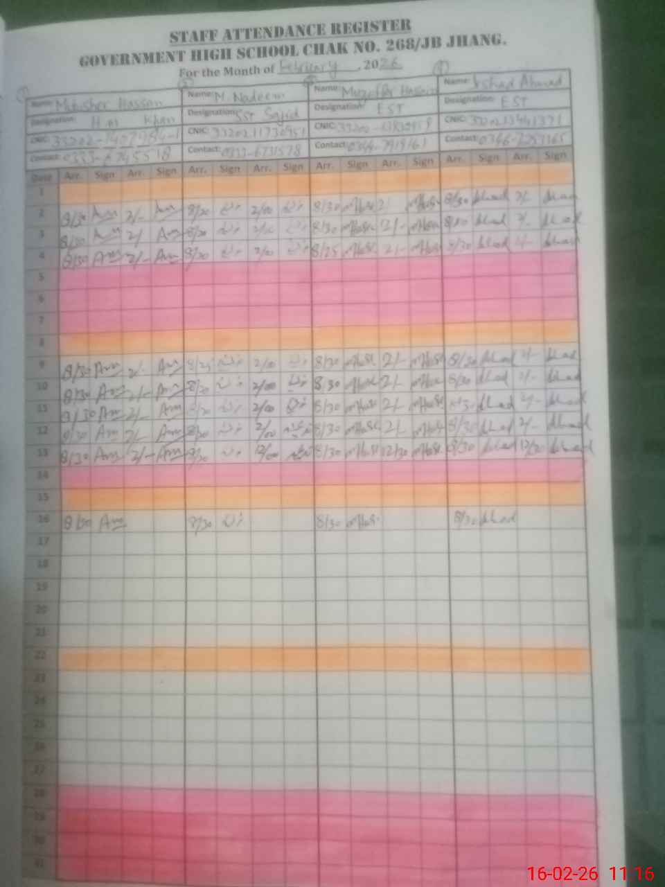 | Name: Mu**** Ha**** Kh**** Designation: (School Headmaster's/Headmistress's) HM (SST Phone/Cell Number: 03**** |