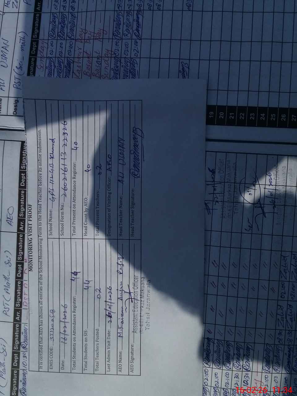 | Certified that this School was Inspected by the Undersigned MEA/DMO Today and the Information Stated Above is as Per Record. | |||||