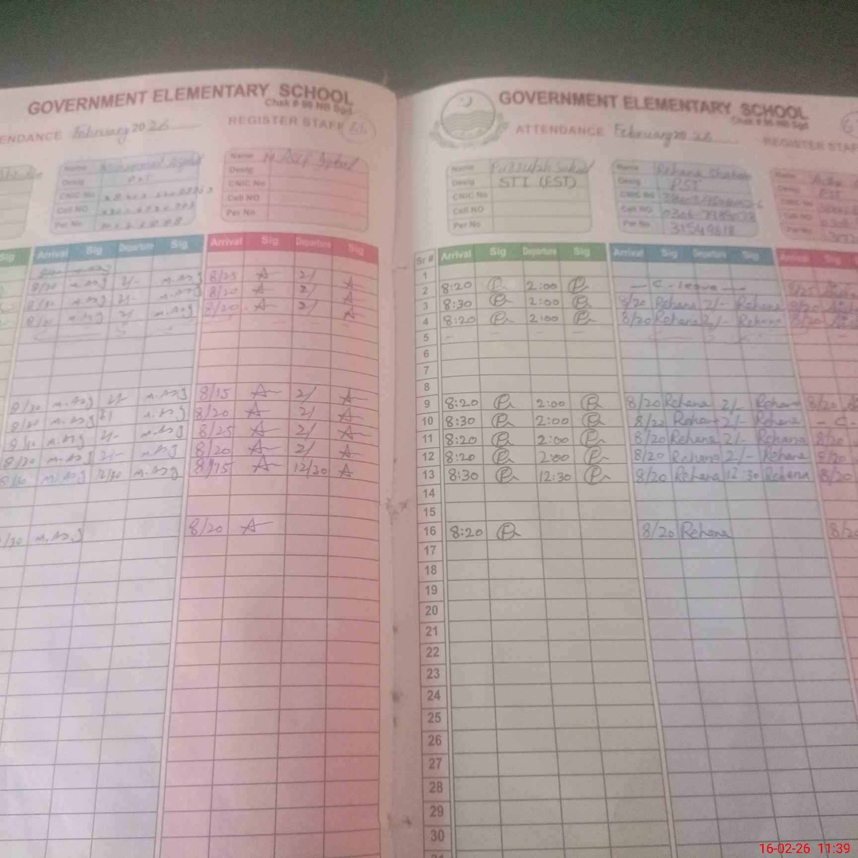 | CNIC | Full Name | Designation | R/C | Absence During Last Calender Month |