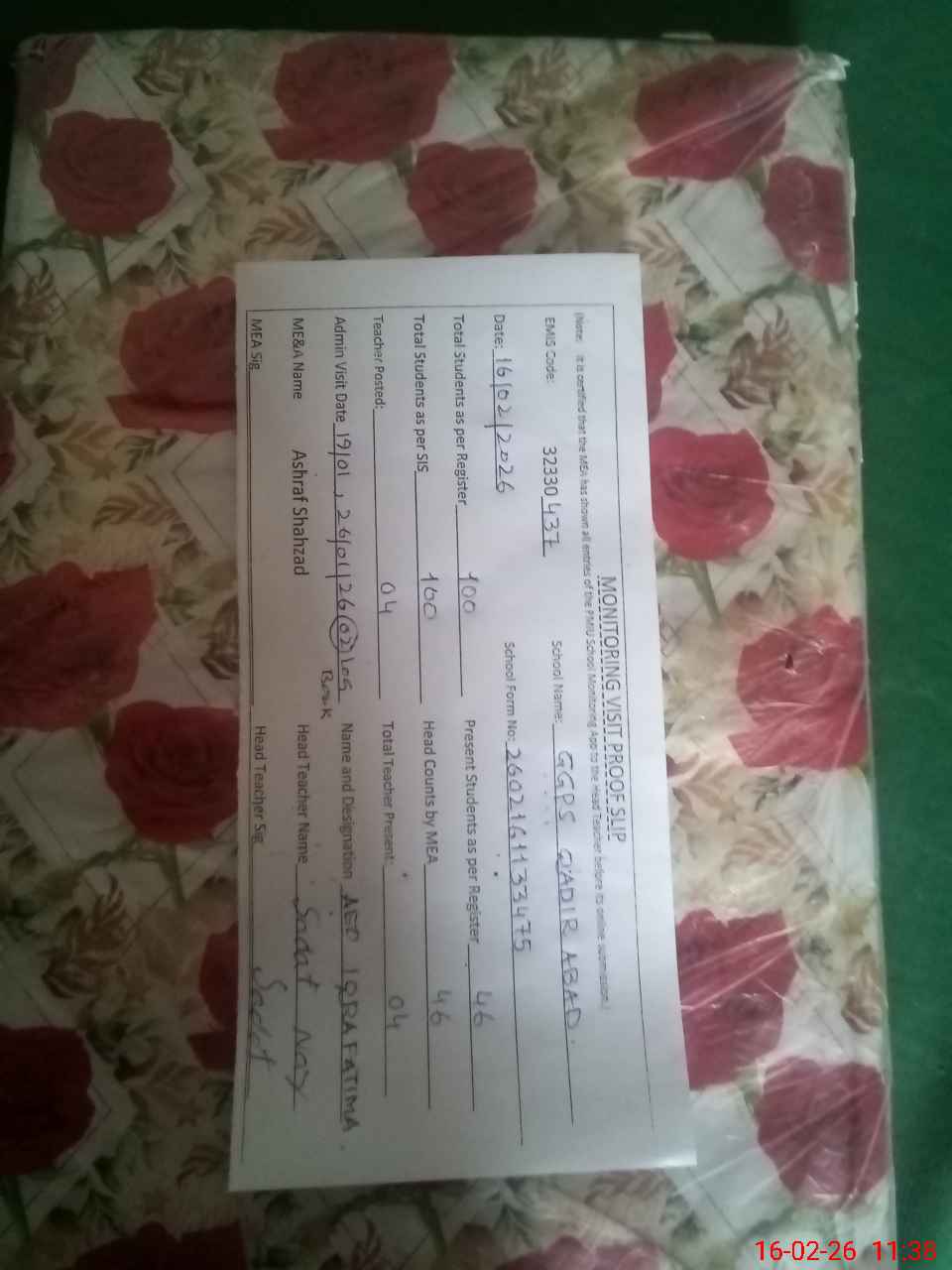 | EMIS Code: 32330437 | Name of School: GGPS QADIR ABAD | |||