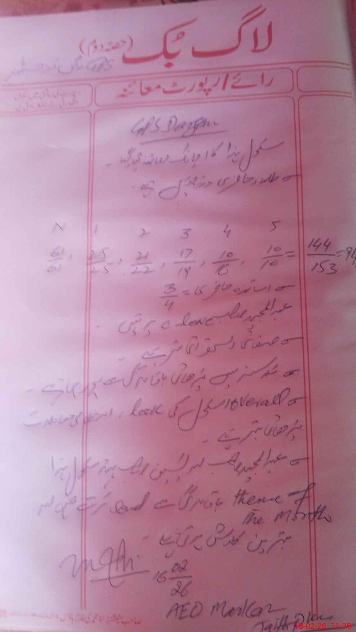 | Certified that this School was Inspected by the Undersigned MEA/DMO Today and the Information Stated Above is as Per Record. | |||||