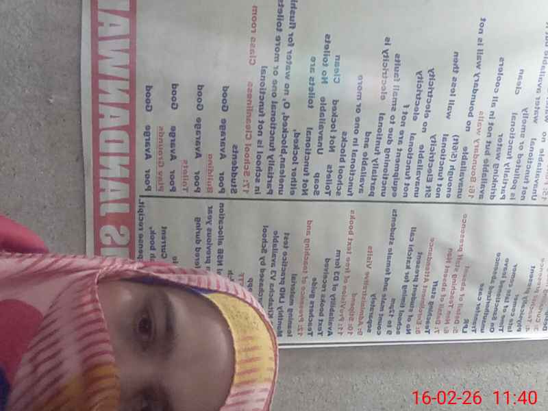 | Total no. of Classrooms: 6 No. of Classrooms Used for Teaching: 0 No. of Classrooms Storing Old Furniture, FTBs, etc: 0Comments if Any: School have 6 classrooms ,1 office,1 store room . 5 toilEts with galleries. Complete school building is dangerous |