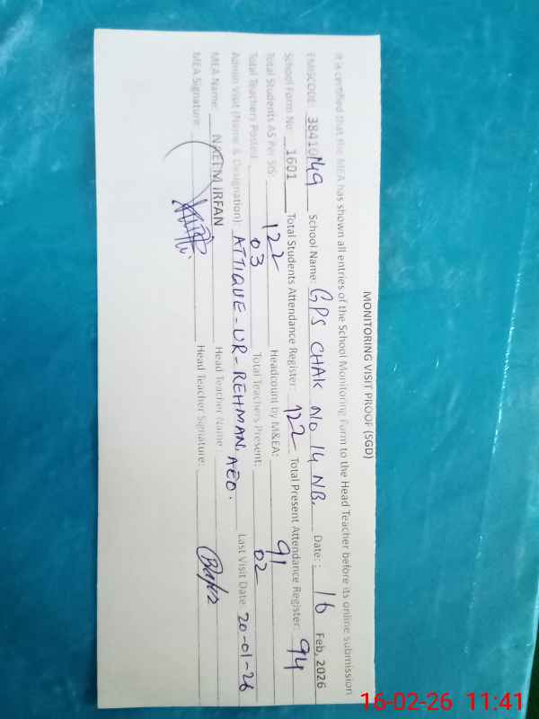 | EMIS Code: 38410149 | Name of School: GPS CHAK NO.14 NB | |||