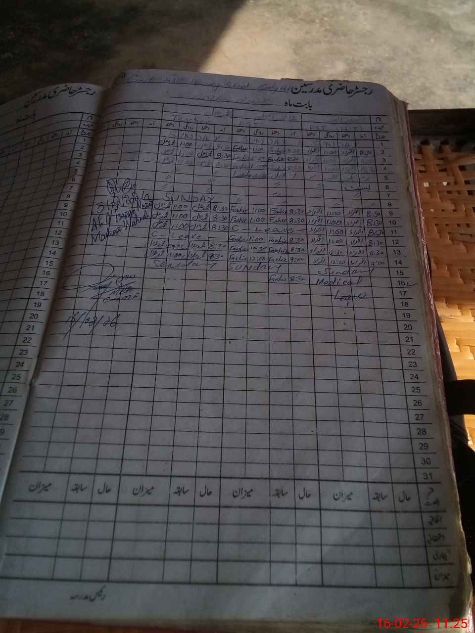 | CNIC | Full Name | Designation | R/C | Absence During Last Calender Month |