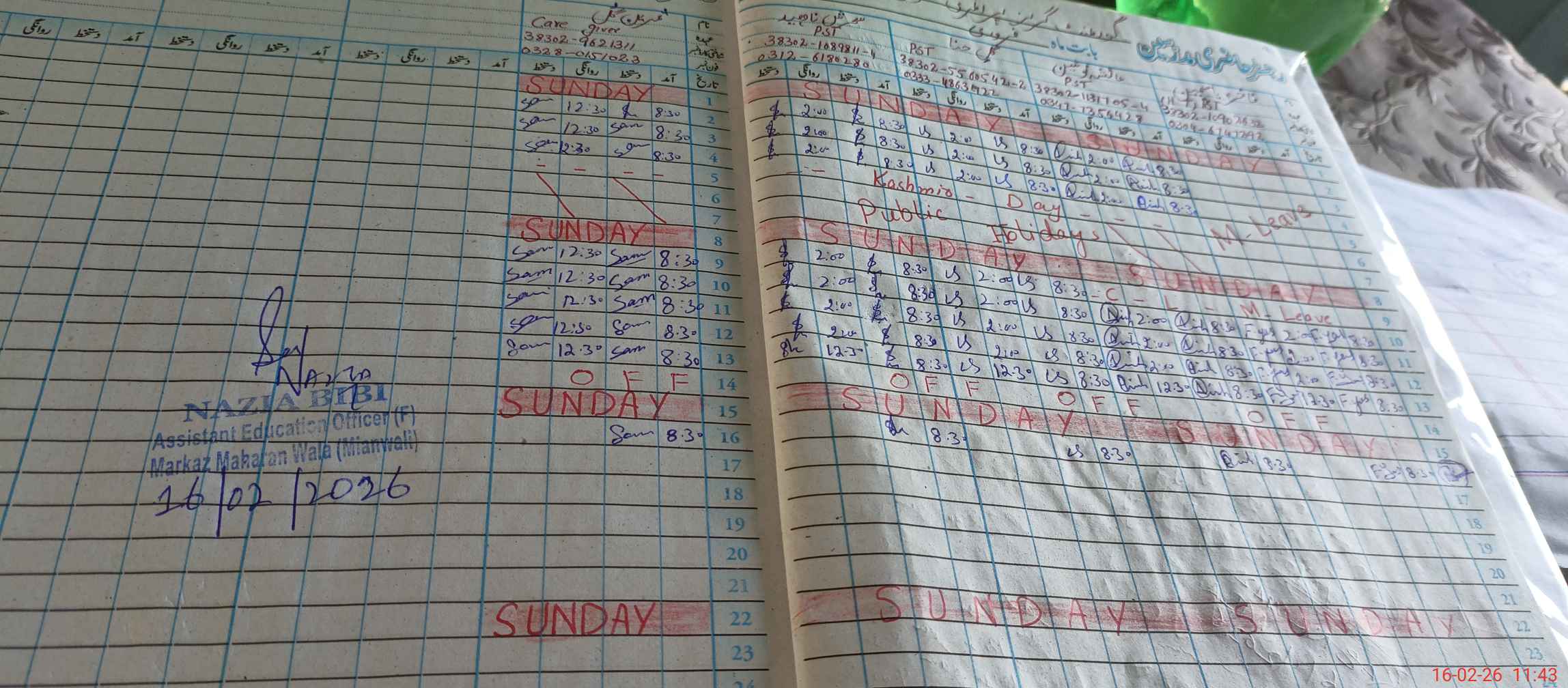 | District: MIANWALI | Tehsil: MIANWALI | Markaz: MAHARAN WALA-FEMALE | Level: Primary | |