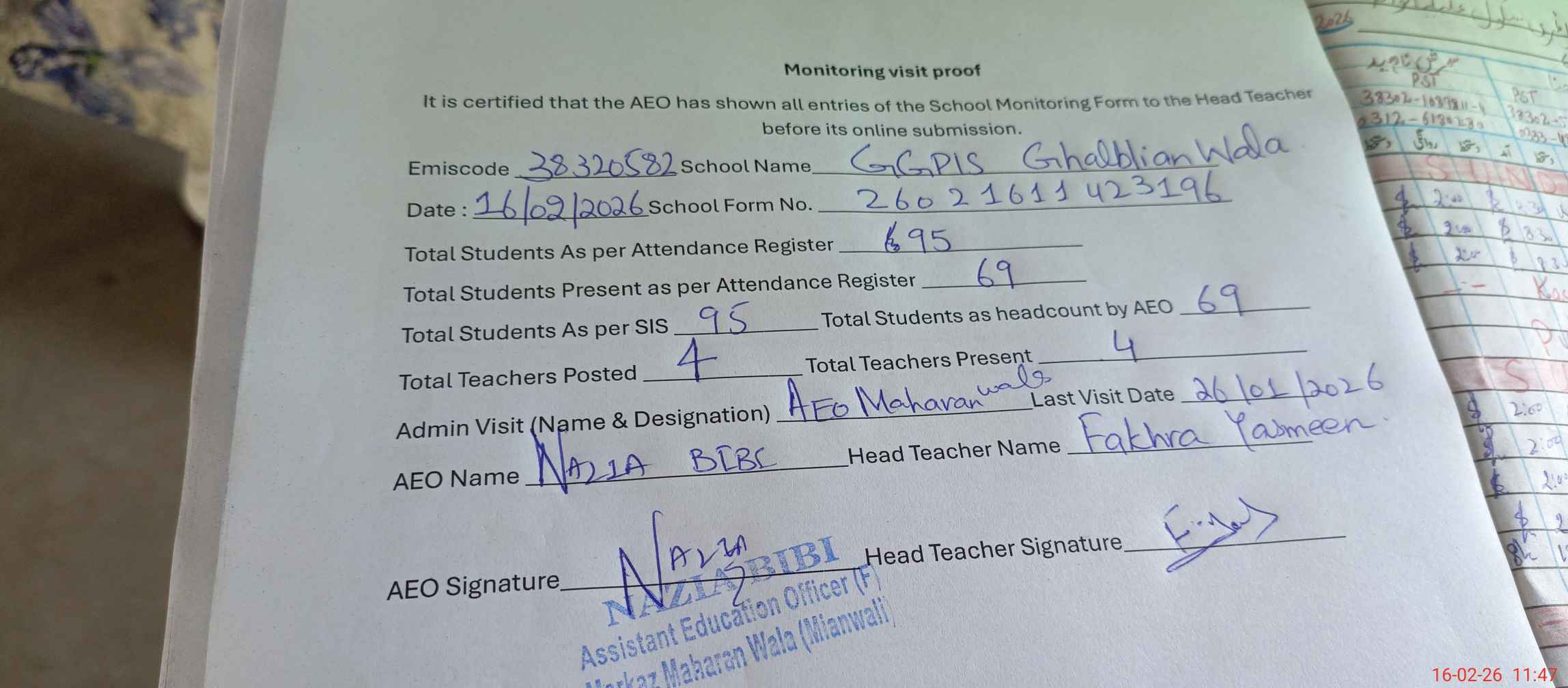 | EMIS Code: 38320582 | Name of School: GGPS GHAL BALIAN WALA | |||