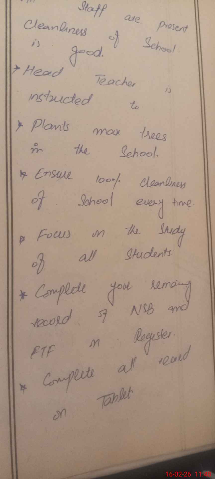 | Attendance Register | Head Teacher | MEA with School | Visit Proof |