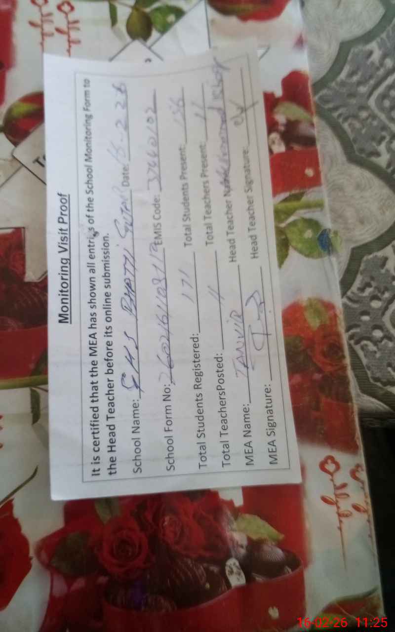 | Certified that this School was Inspected by the Undersigned MEA/DMO Today and the Information Stated Above is as Per Record. | |||||