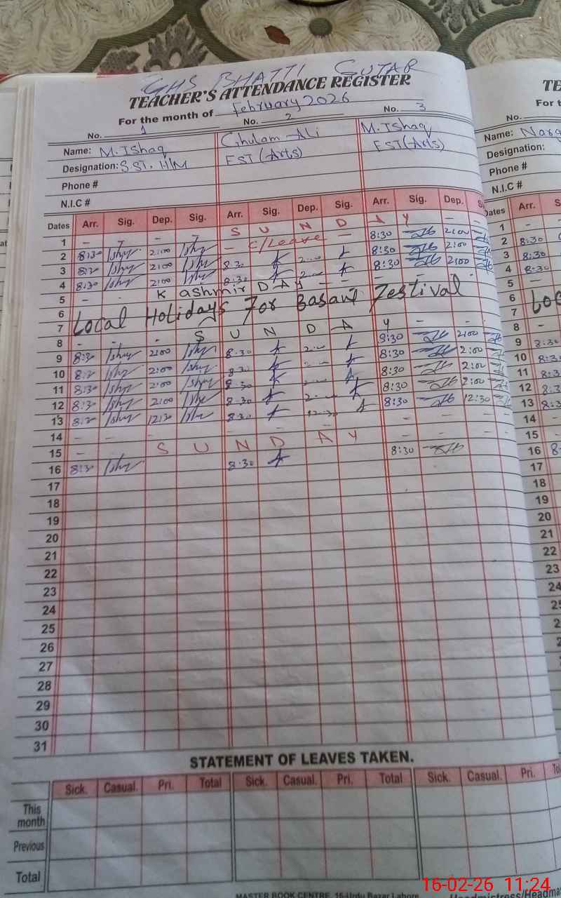 | EMIS Code: 37440102 | Name of School: GHS BHATTI GUJJAR | |||