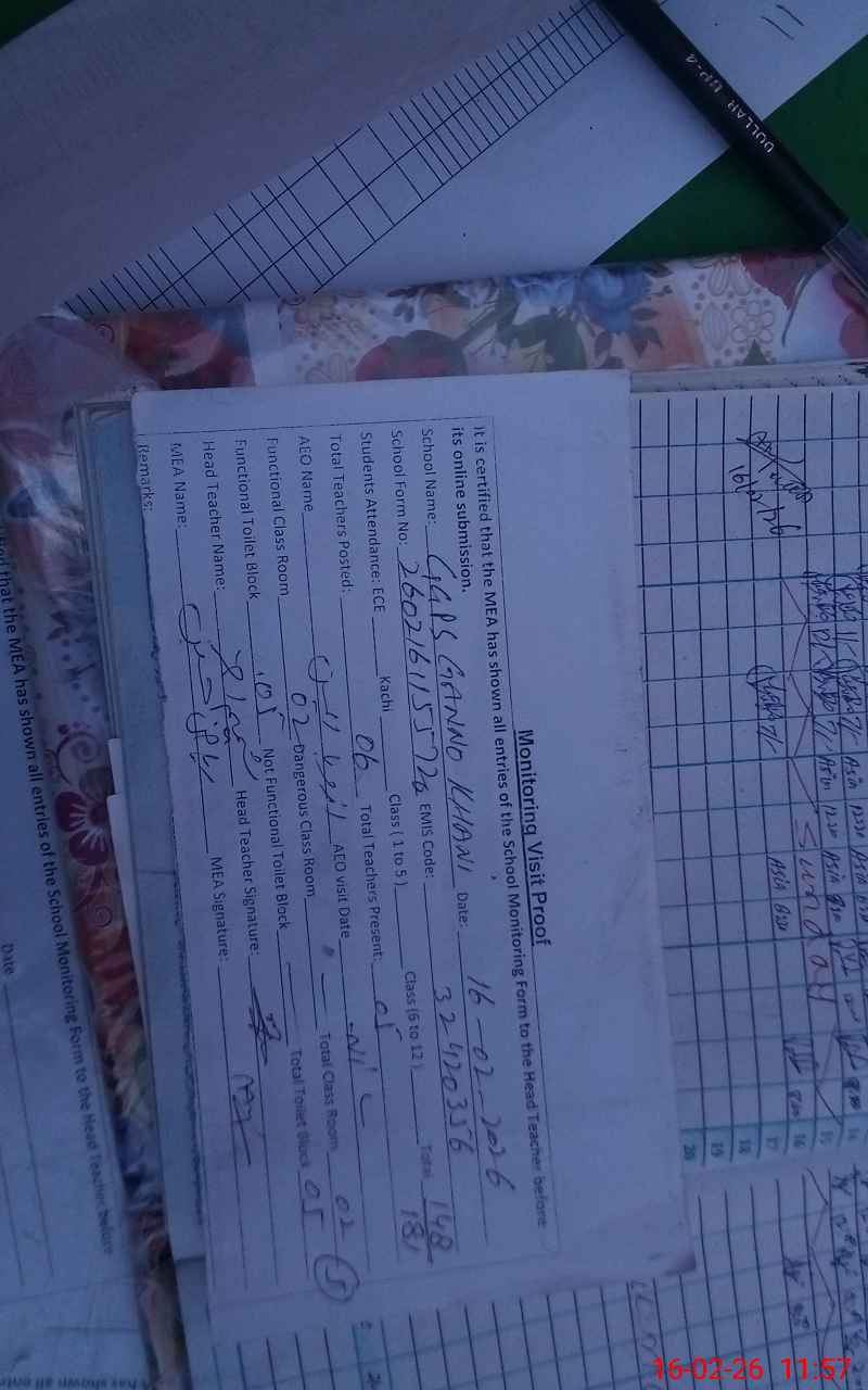 | EMIS Code: 32420356 | Name of School: GGPS GANNO KHANI | |||