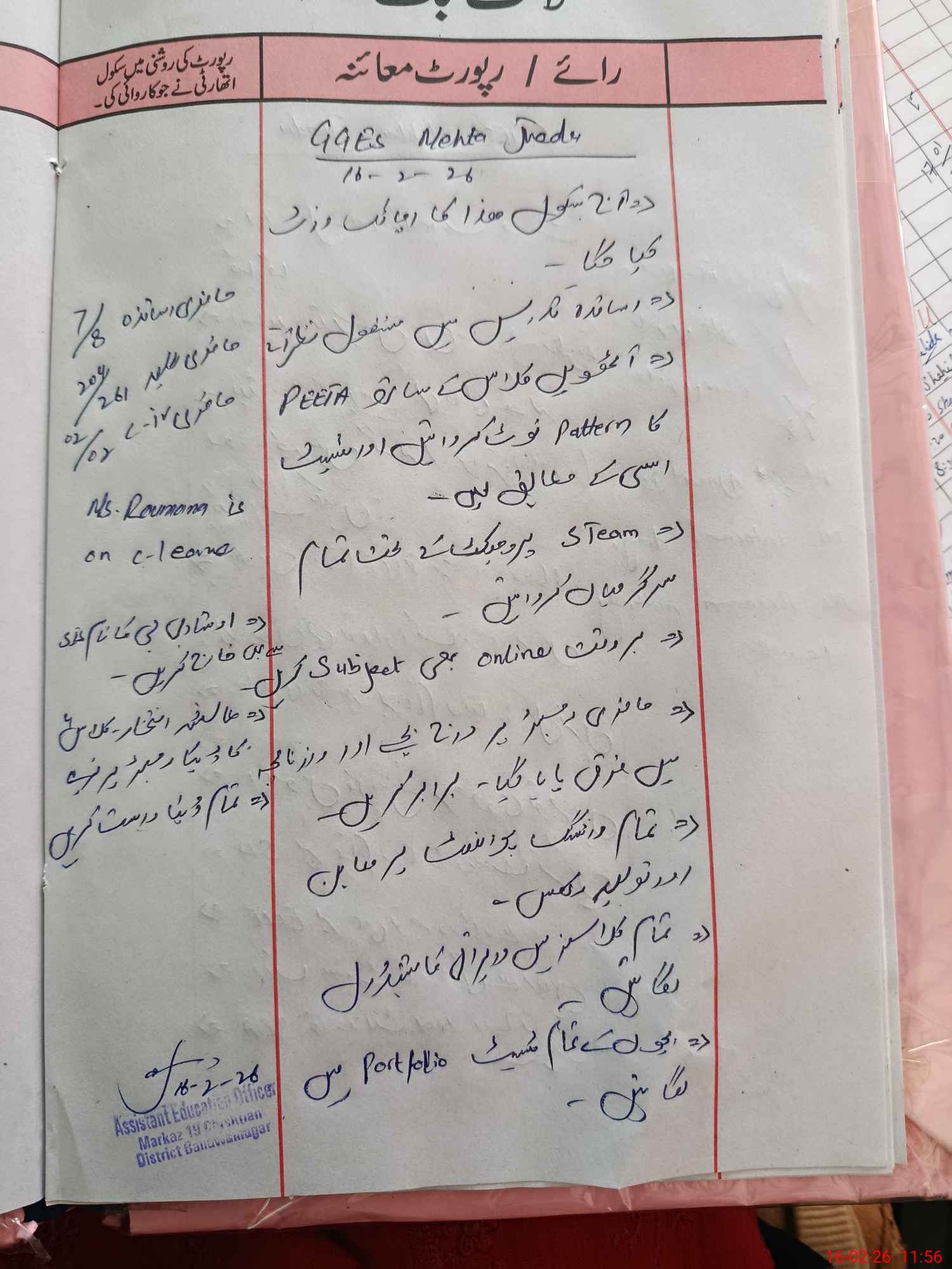 | District: BAHAWALNAGAR | Tehsil: CHISHTIAN | Markaz: FEMALE-19 | Level: Middle | |