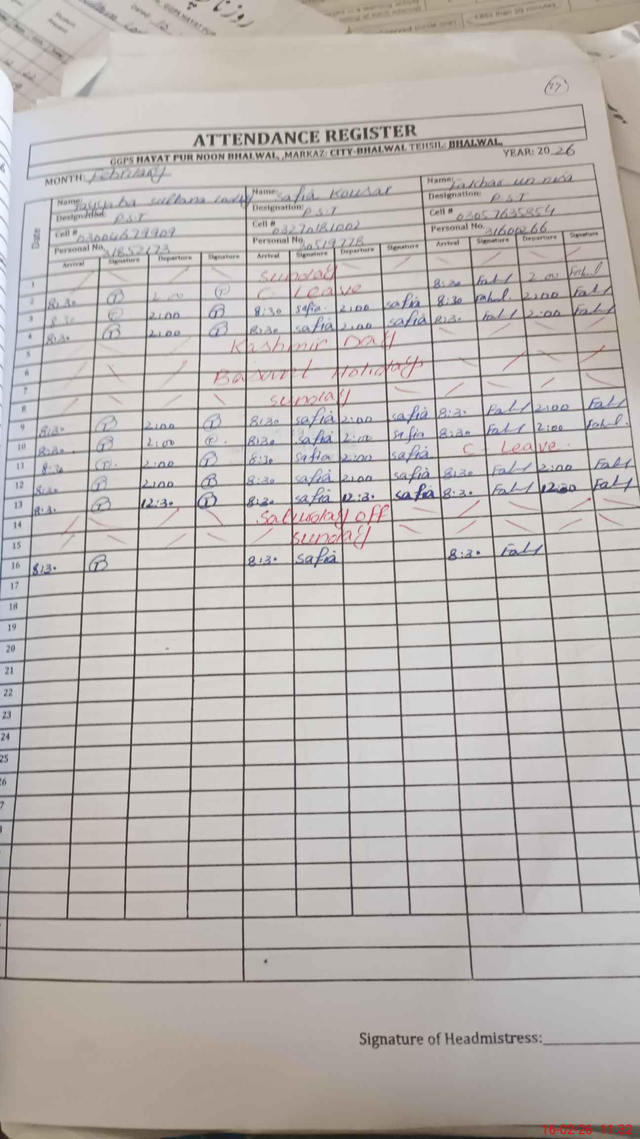 | Name: TA**** SU**** Designation: (School Headmaster's/Headmistress's) PST Phone/Cell Number: 03**** |