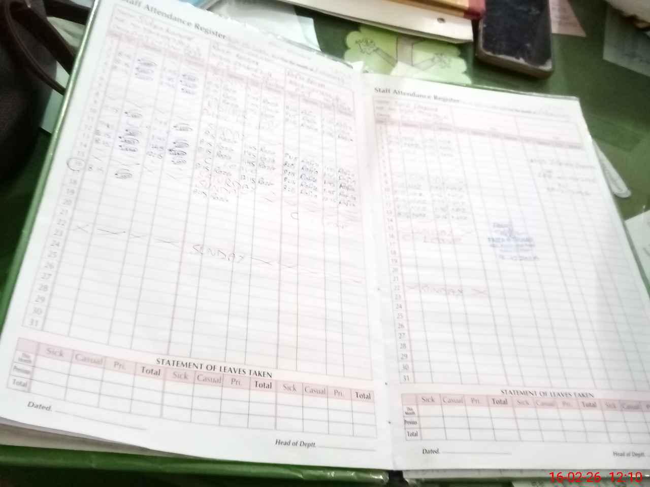 | Leave | Duty | Absent | Maternity | Medical | Ex- Pak |