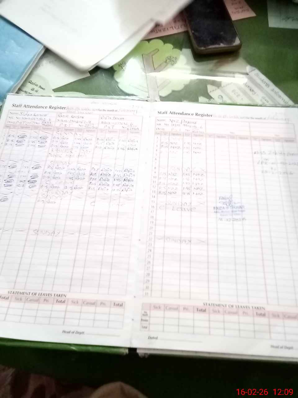 | CNIC | Full Name | Designation | R/C | Absence During Last Calender Month |