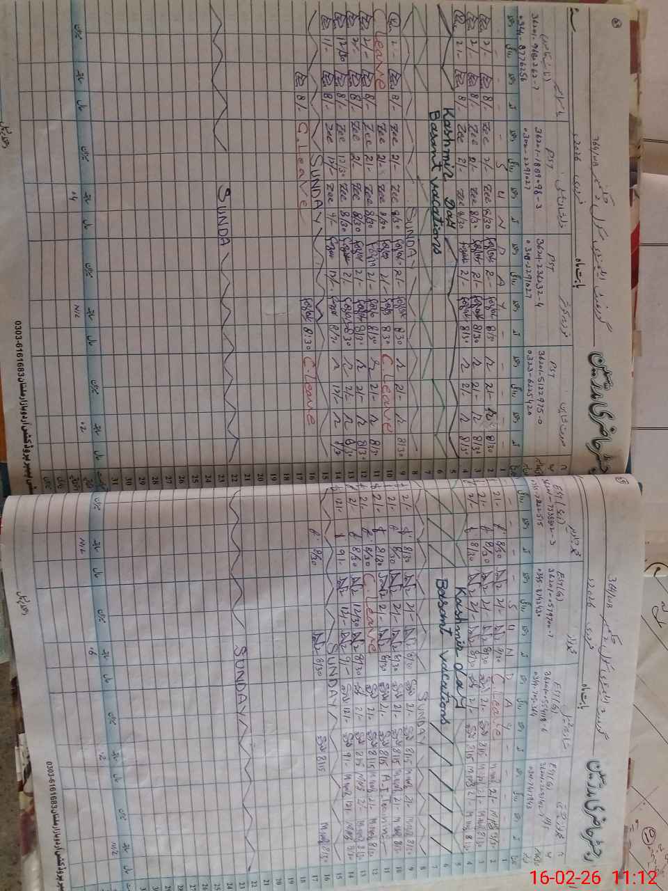 | CNIC | Full Name | Designation | R/C | Absence During Last Calender Month |