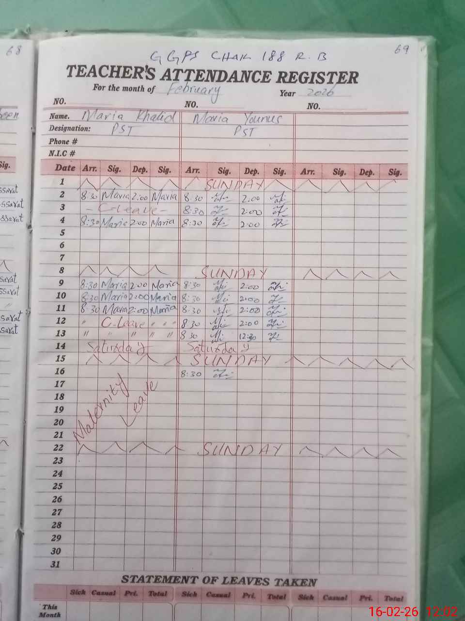 | 35**** | Ma**** Kh**** | PST Science/Maths | Regular | 2 | 0 | 0 | 0 | 0 | 0 | 0 | 0 | 2 | Paternity |
