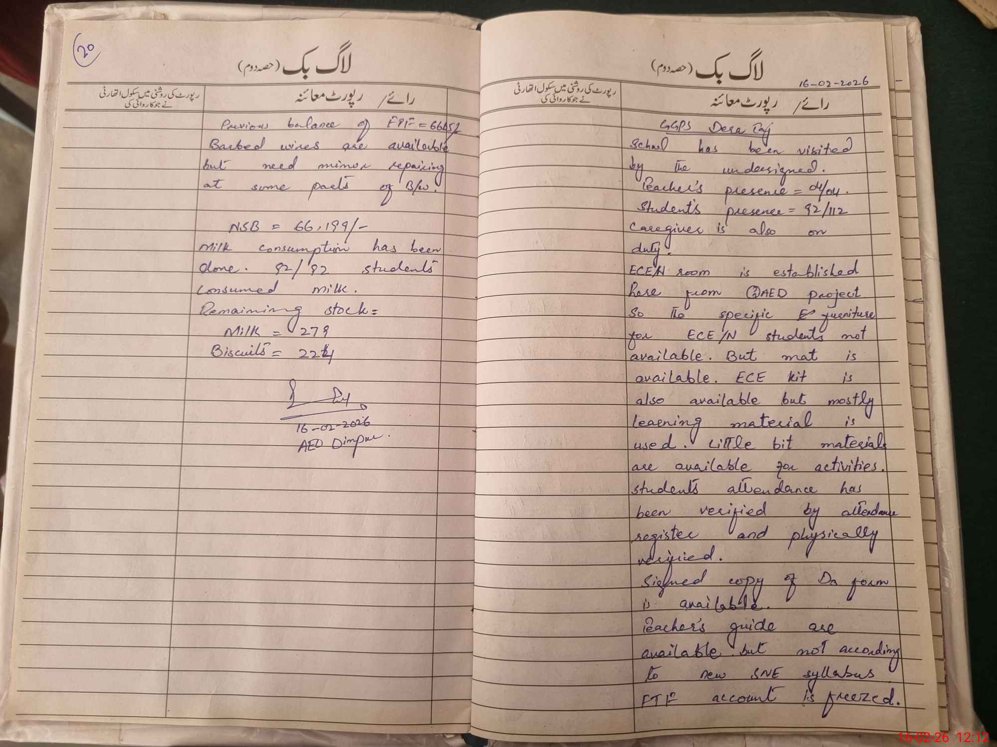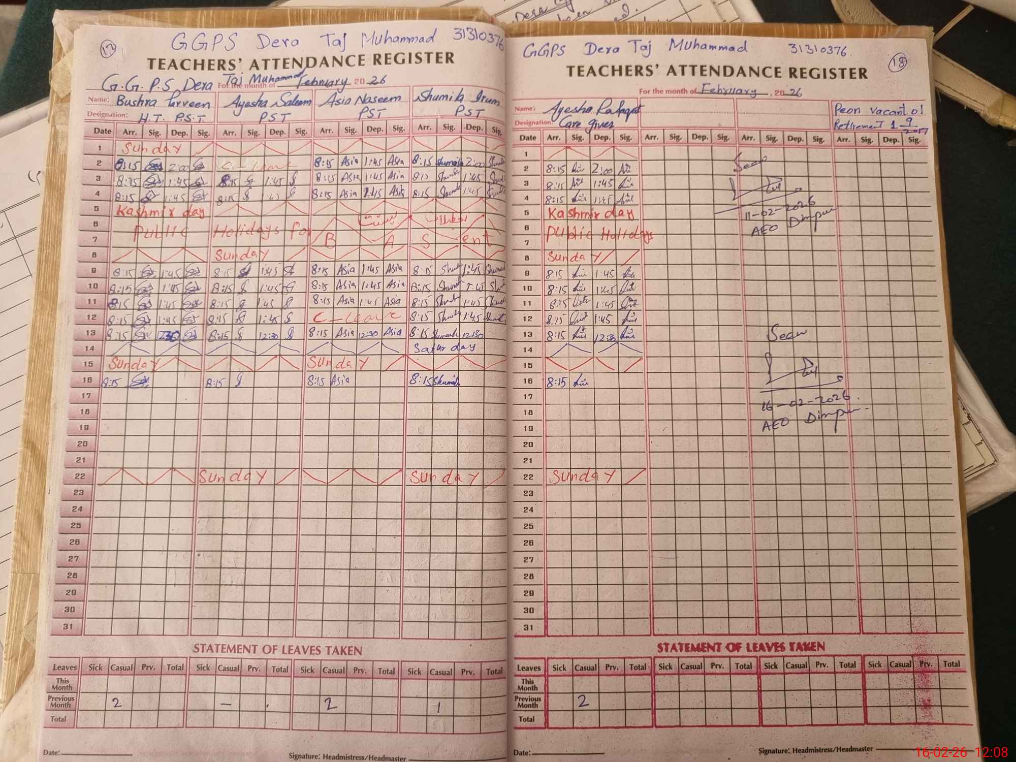 | Attendance Register | Head Teacher | MEA with School | Visit Proof |