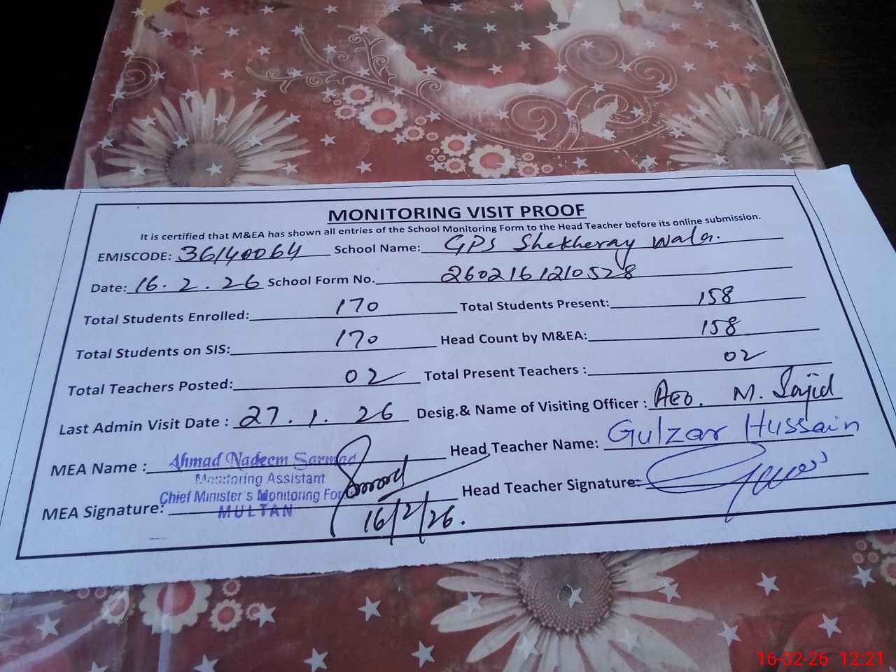 | EMIS Code: 36140064 | Name of School: GPS SHAIKHRAY WALA MOZA CHAK NO 67 | |||