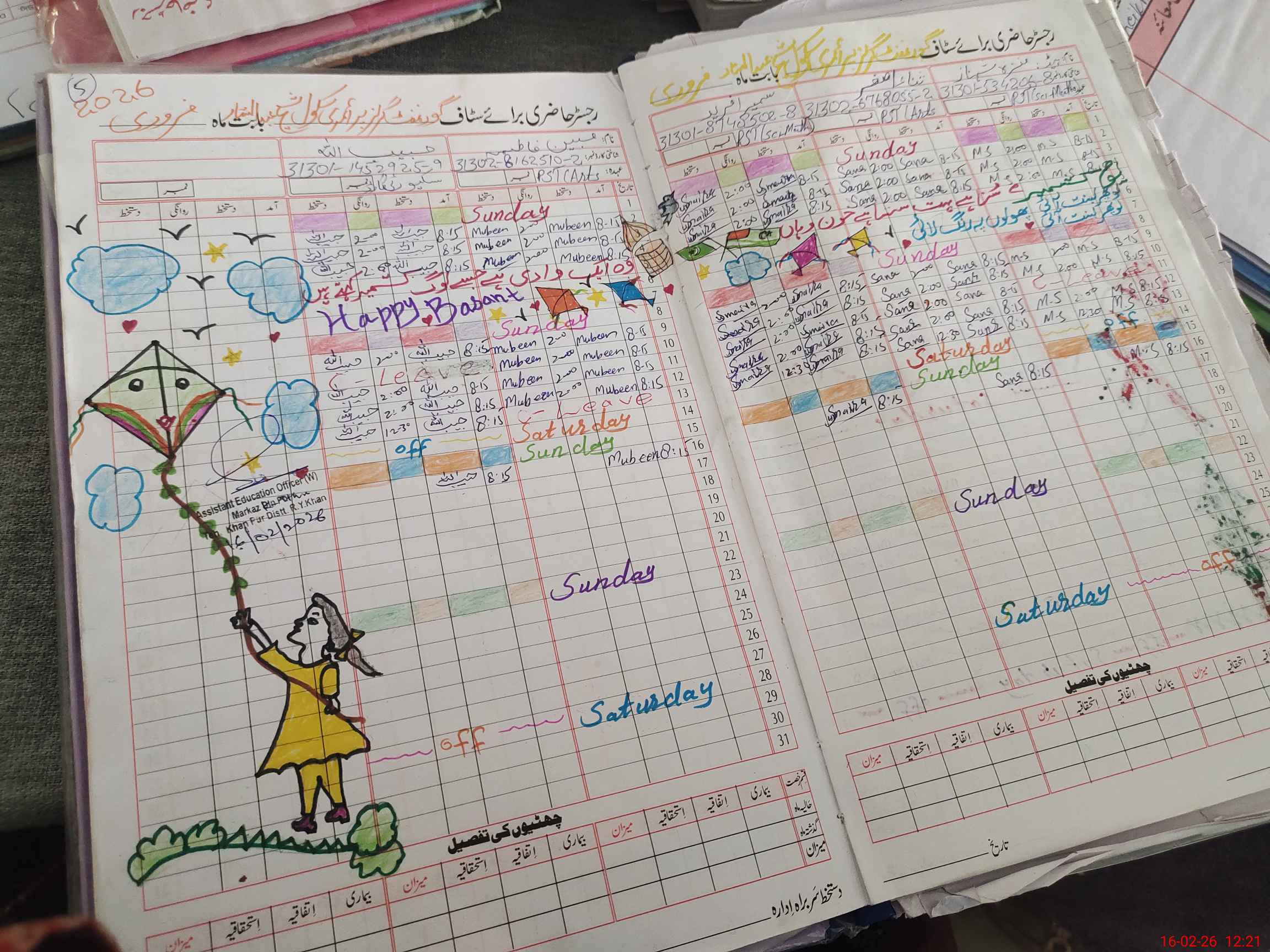 | CNIC | Full Name | Designation | R/C | Absence During Last Calender Month |
