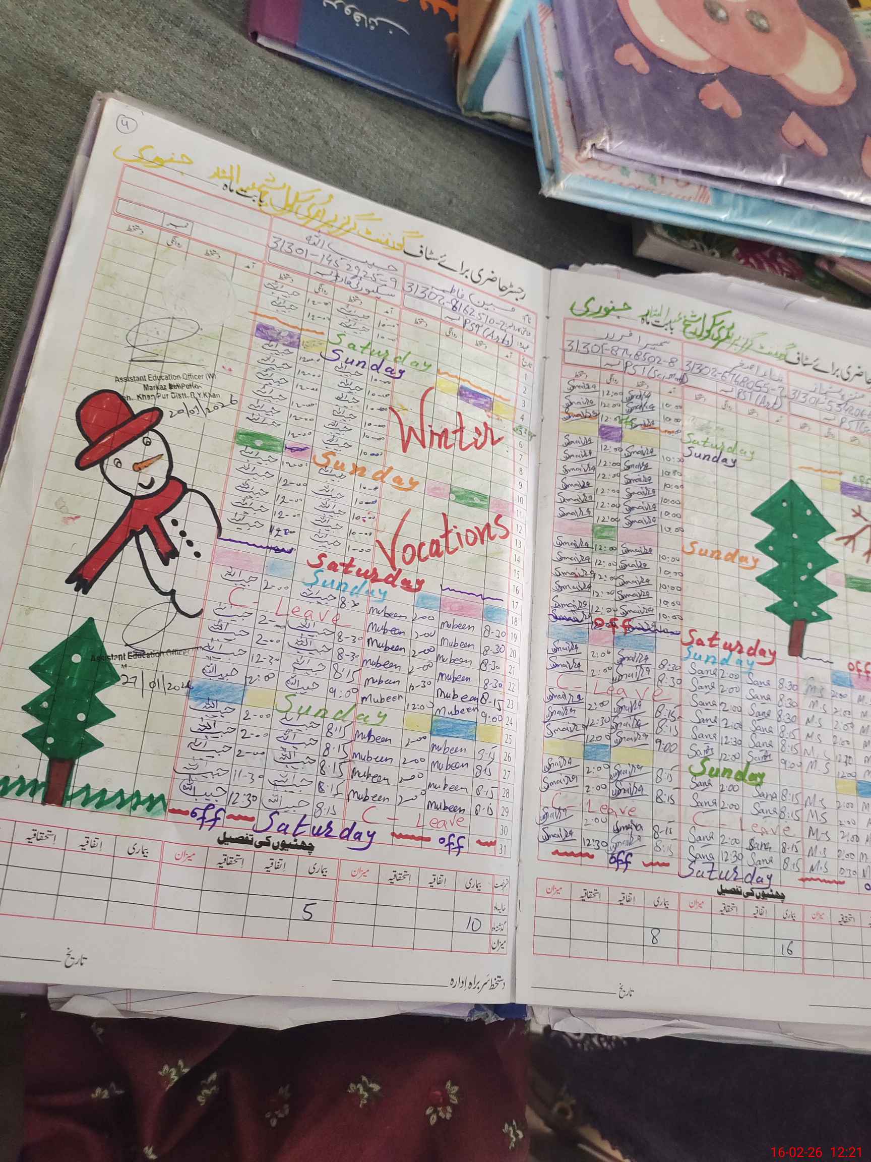 | Leave | Duty | Absent | Maternity | Medical | Ex- Pak |