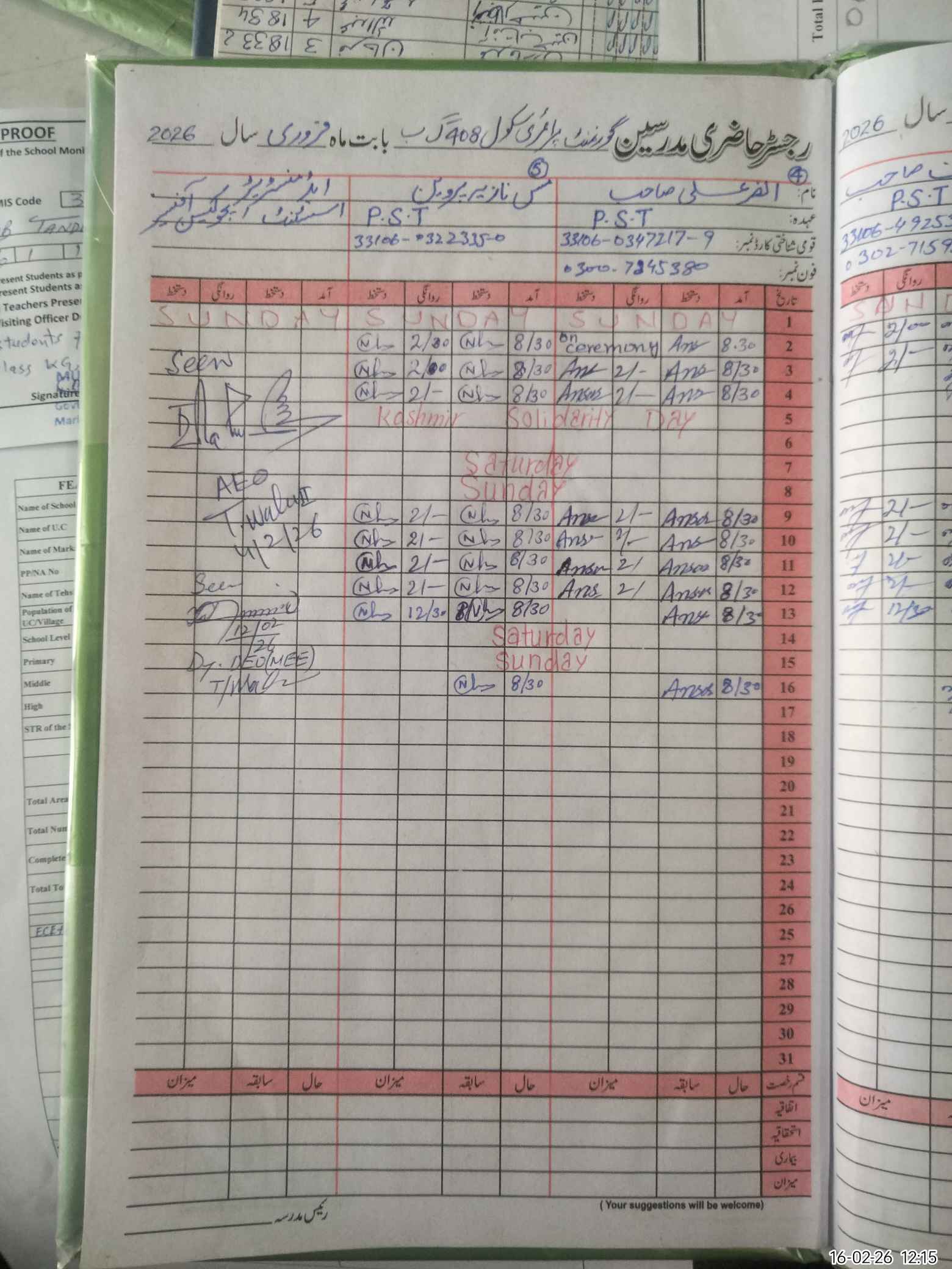 | Name: MU**** AS**** Designation: (School Headmaster's/Headmistress's) PST Phone/Cell Number: 03**** |