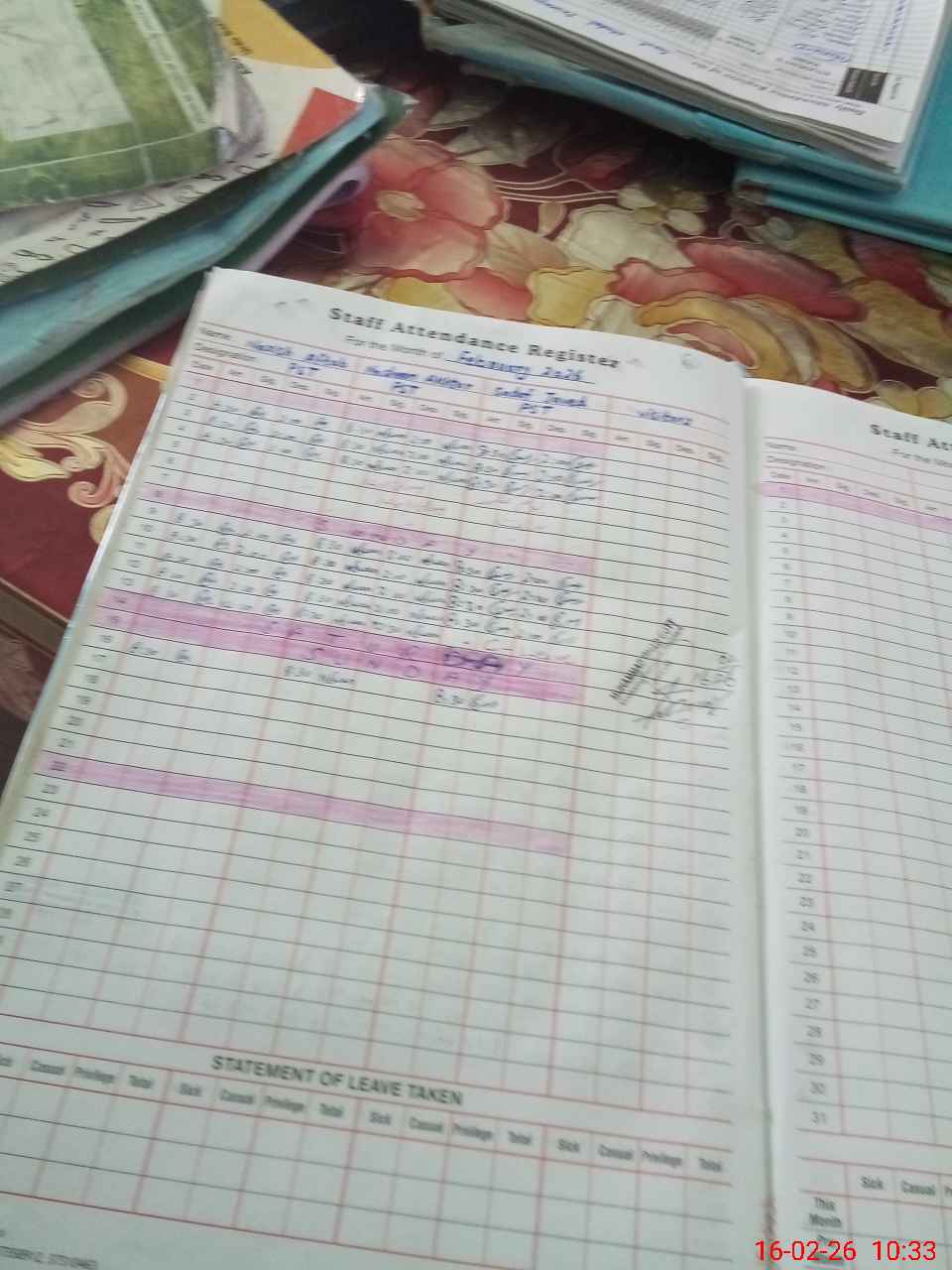 | Leave | Duty | Absent | Maternity | Medical | Ex- Pak |