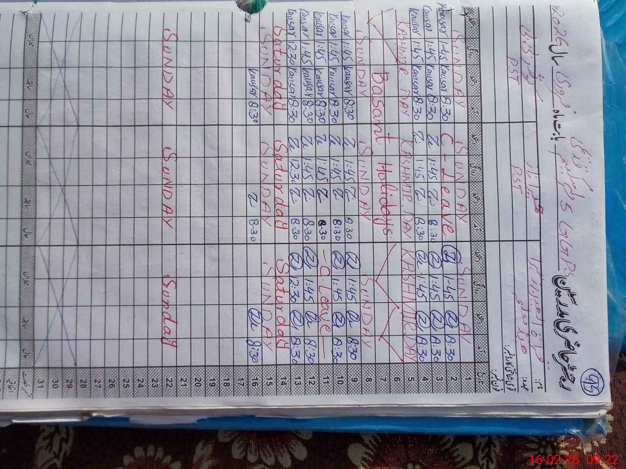 | Leave | Duty | Absent | Maternity | Medical | Ex- Pak |