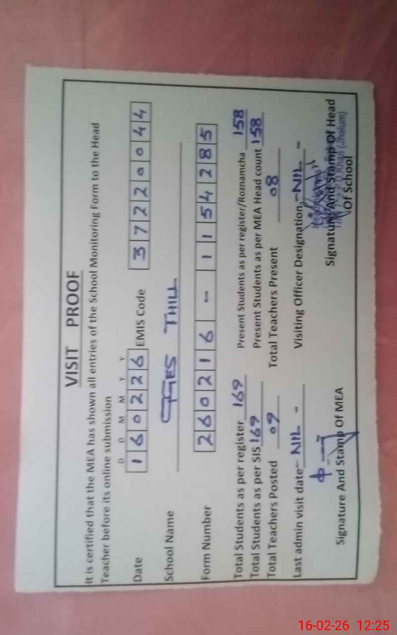 | Certified that this School was Inspected by the Undersigned MEA/DMO Today and the Information Stated Above is as Per Record. | |||||