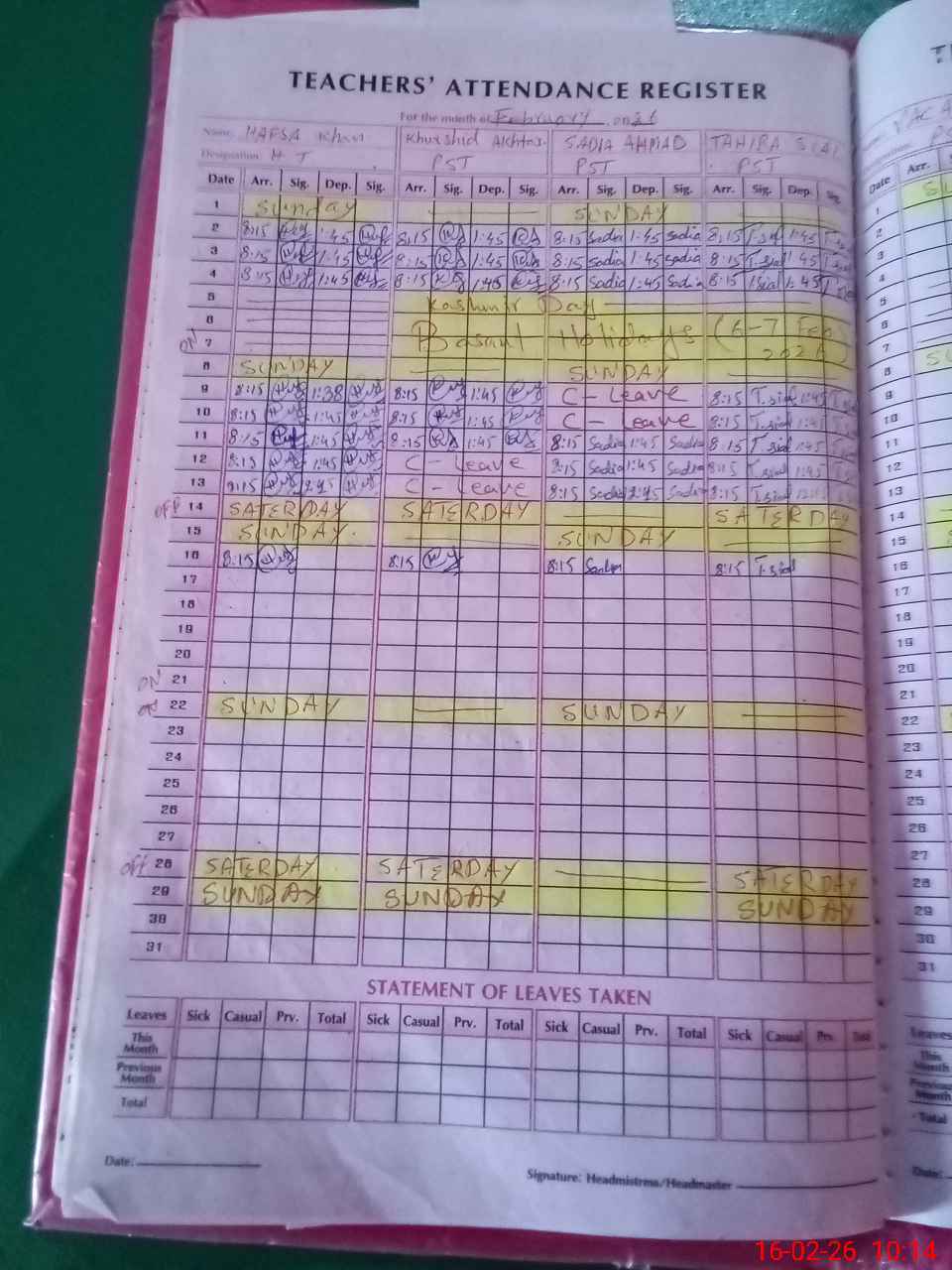 | Name: Ha**** Kh**** Designation: (School Headmaster's/Headmistress's) PST Phone/Cell Number: 03**** |