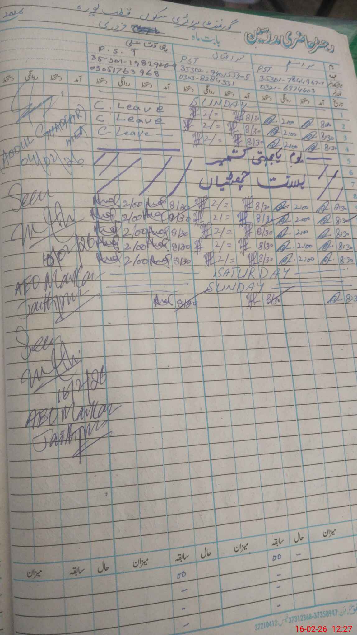 | Name: MU**** Az**** Designation: (School Headmaster's/Headmistress's) PTC/JV Phone/Cell Number: 03**** |