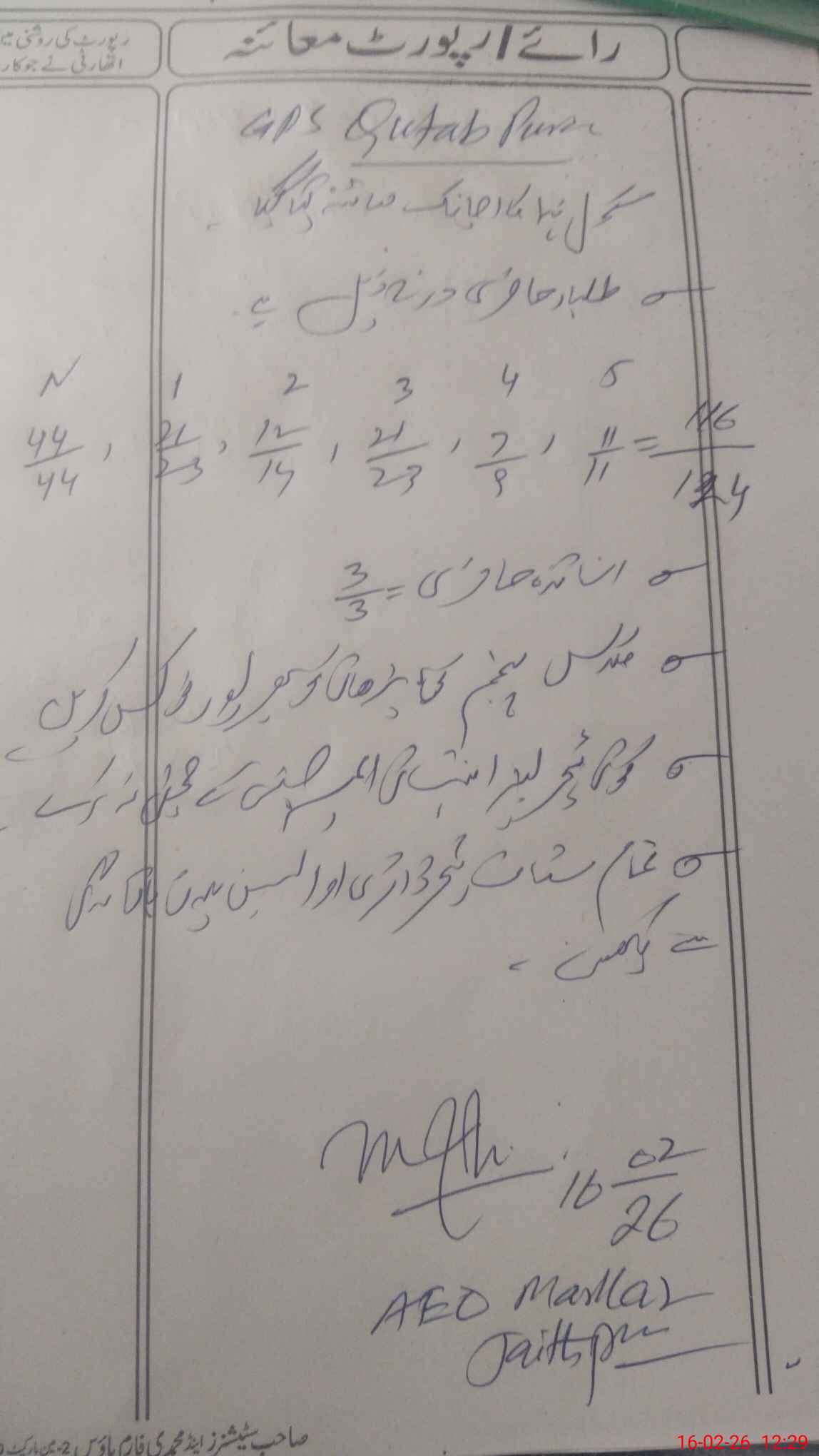 | EMIS Code: 39310280 | Name of School: GPS QUTAB PURA | |||