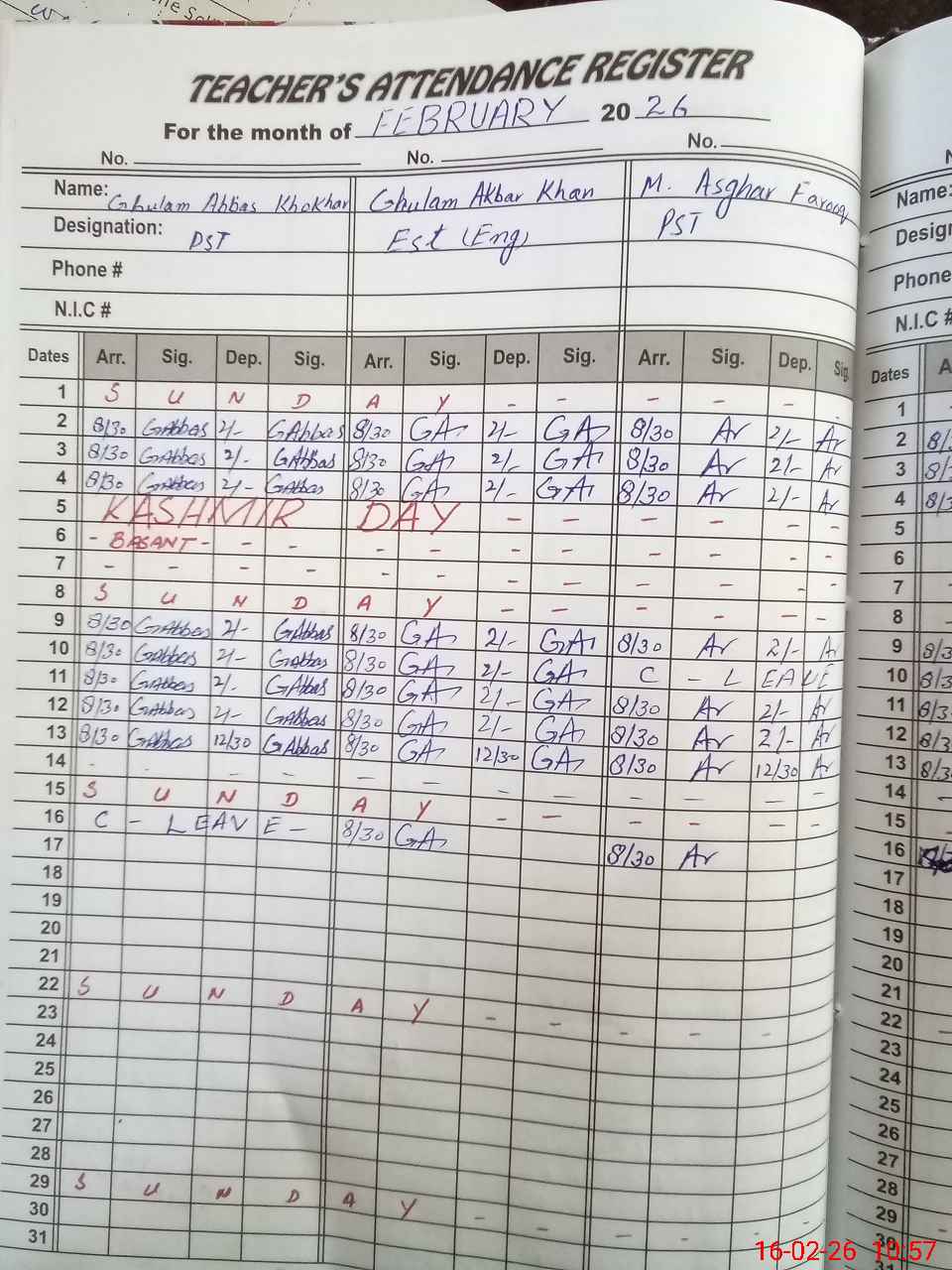| 33**** | Gh**** Ab**** Kh**** | PST Arts | Regular | 0 | 0 | 0 | 0 | 0 | 0 | 0 | 0 | 0 | Casual |