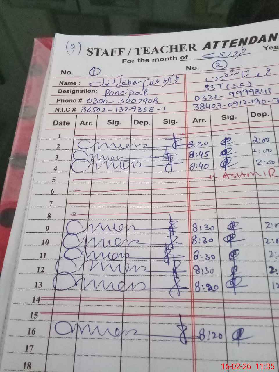 | Name: Gh**** Mu**** Designation: (School Headmaster's/Headmistress's) Principal Phone/Cell Number: 03**** |