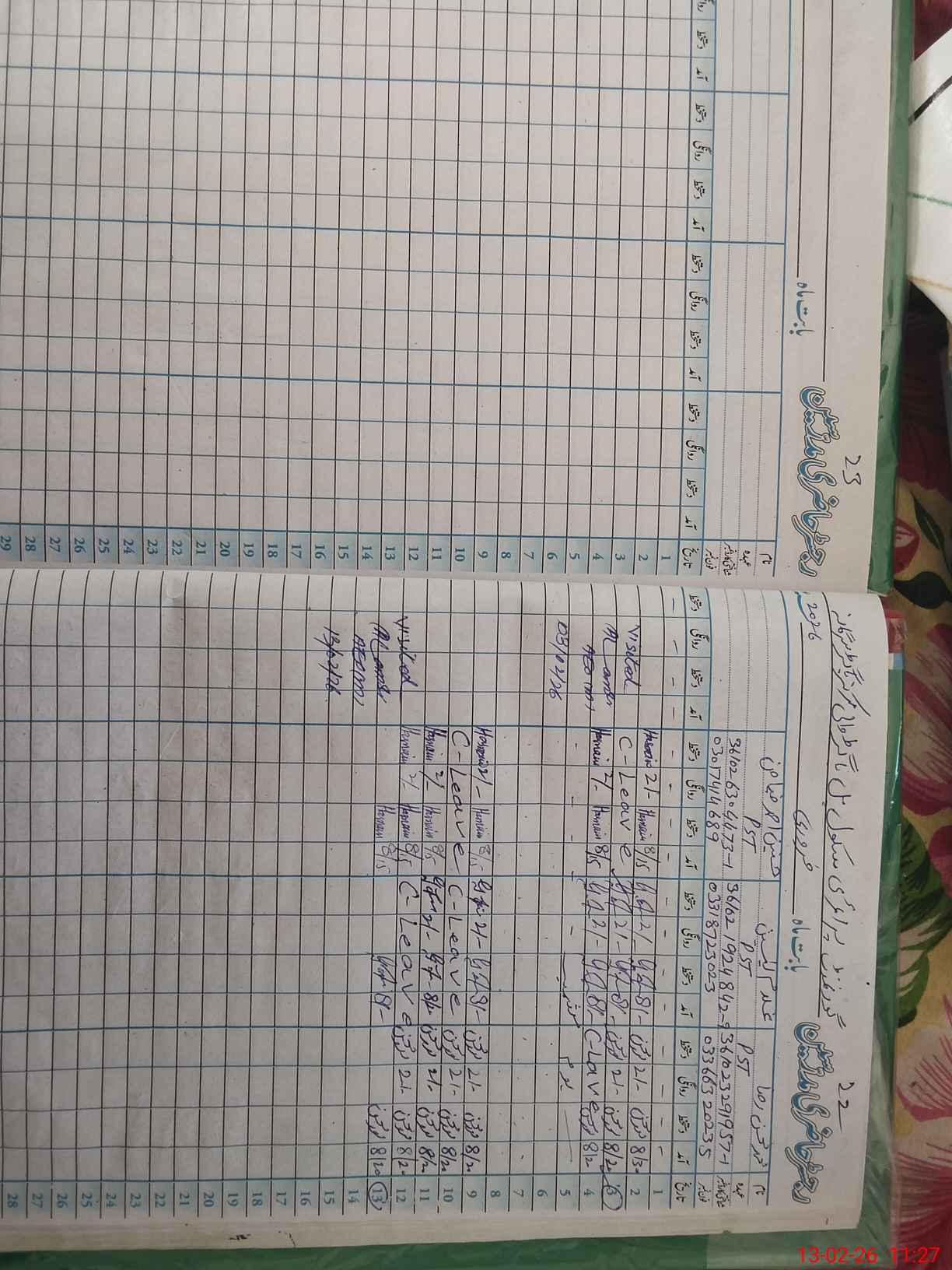 | Leave | Duty | Absent | Maternity | Medical | Ex- Pak |