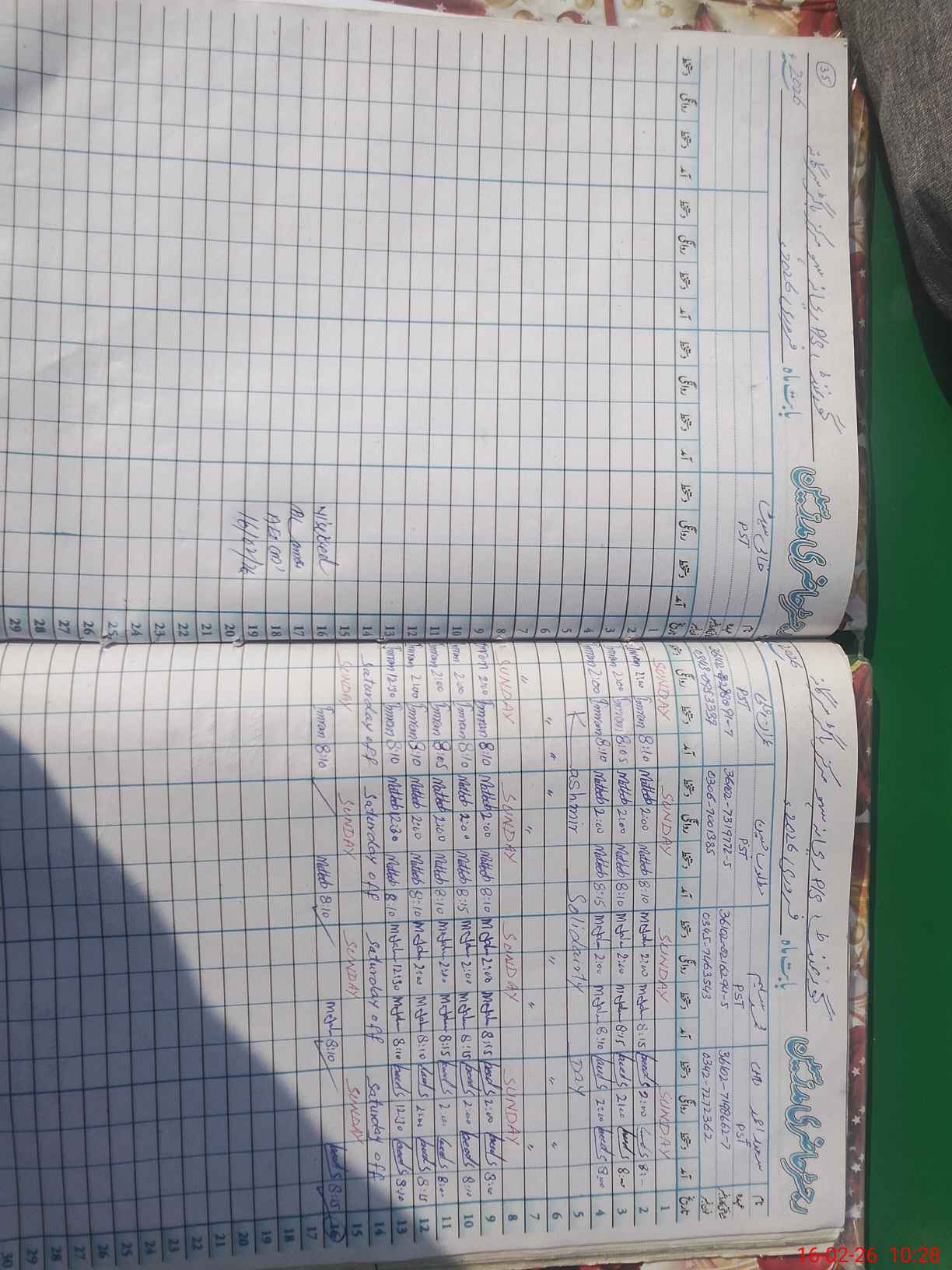 | CNIC | Full Name | Designation | R/C | Absence During Last Calender Month |