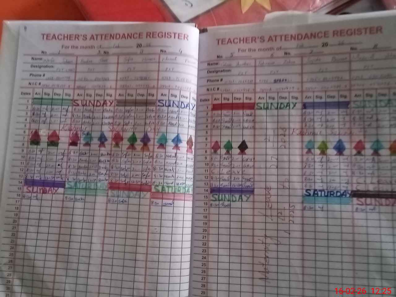 | CNIC | Full Name | Designation | R/C | Absence During Last Calender Month |