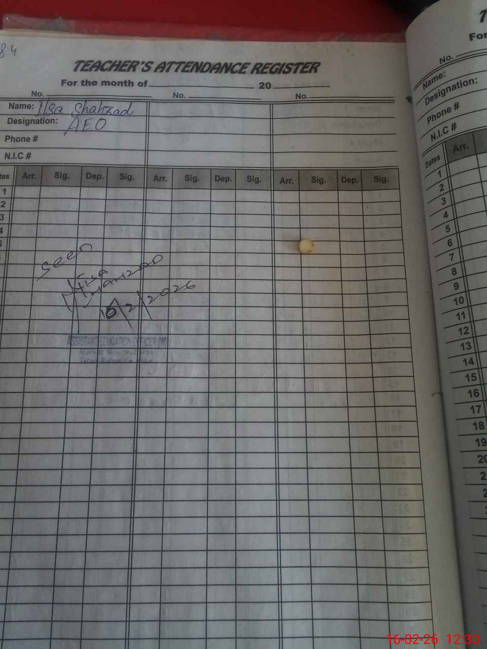 | Name: MA**** BI**** Designation: (School Headmaster's/Headmistress's) PST/PTC/JV Phone/Cell Number: 03**** |